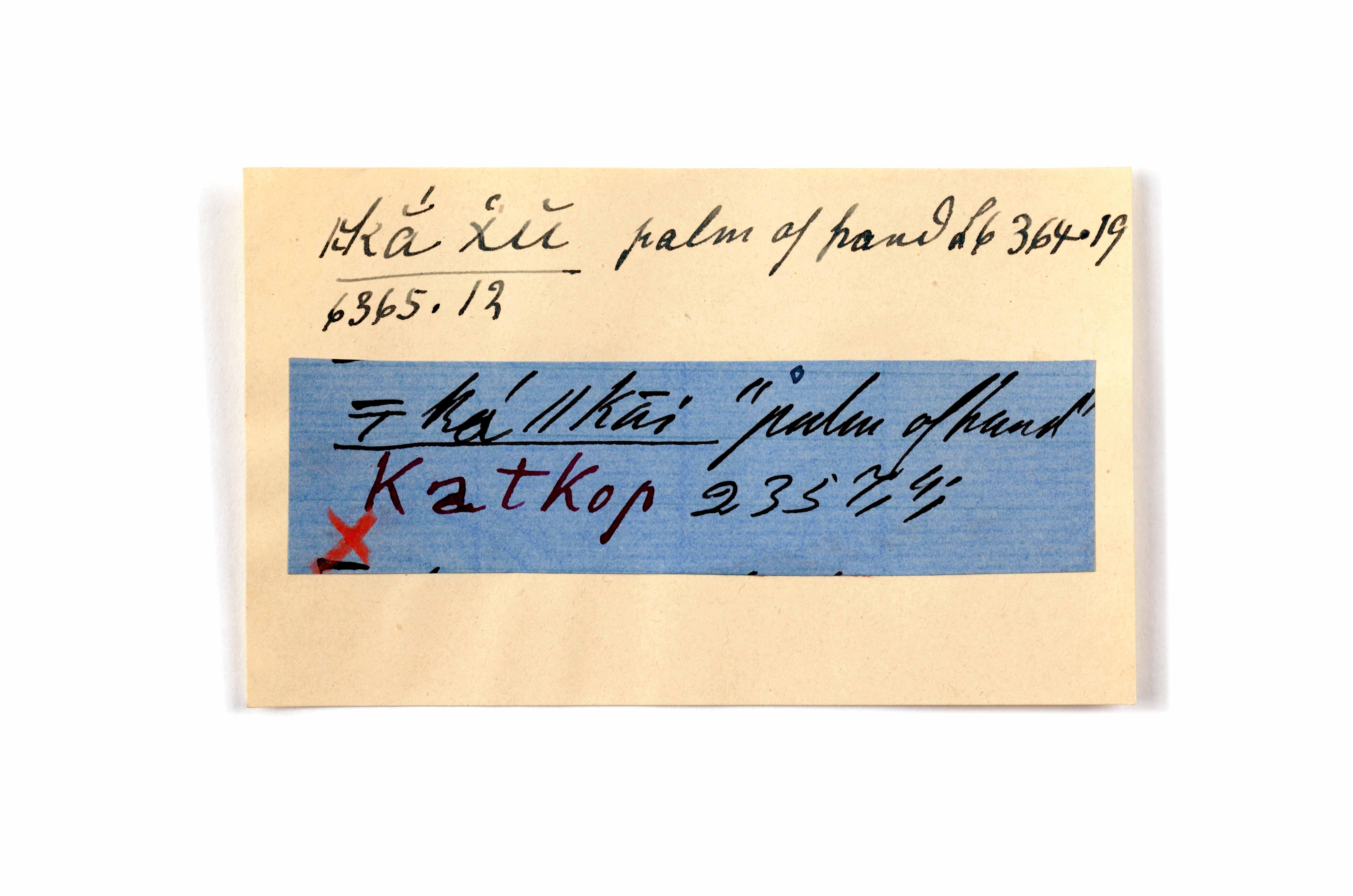 ink on blue paper glued on card