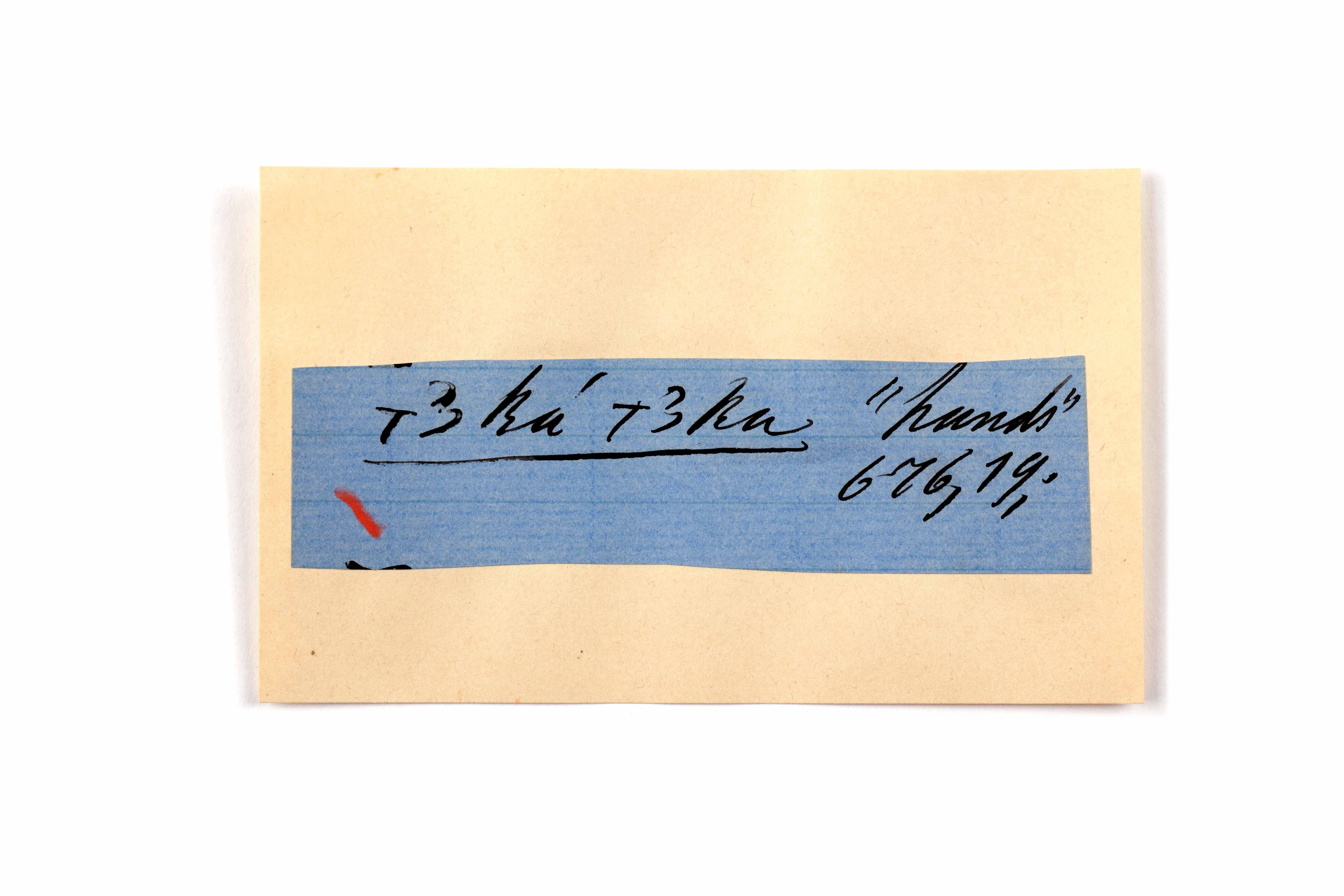 ink on blue paper glued on card