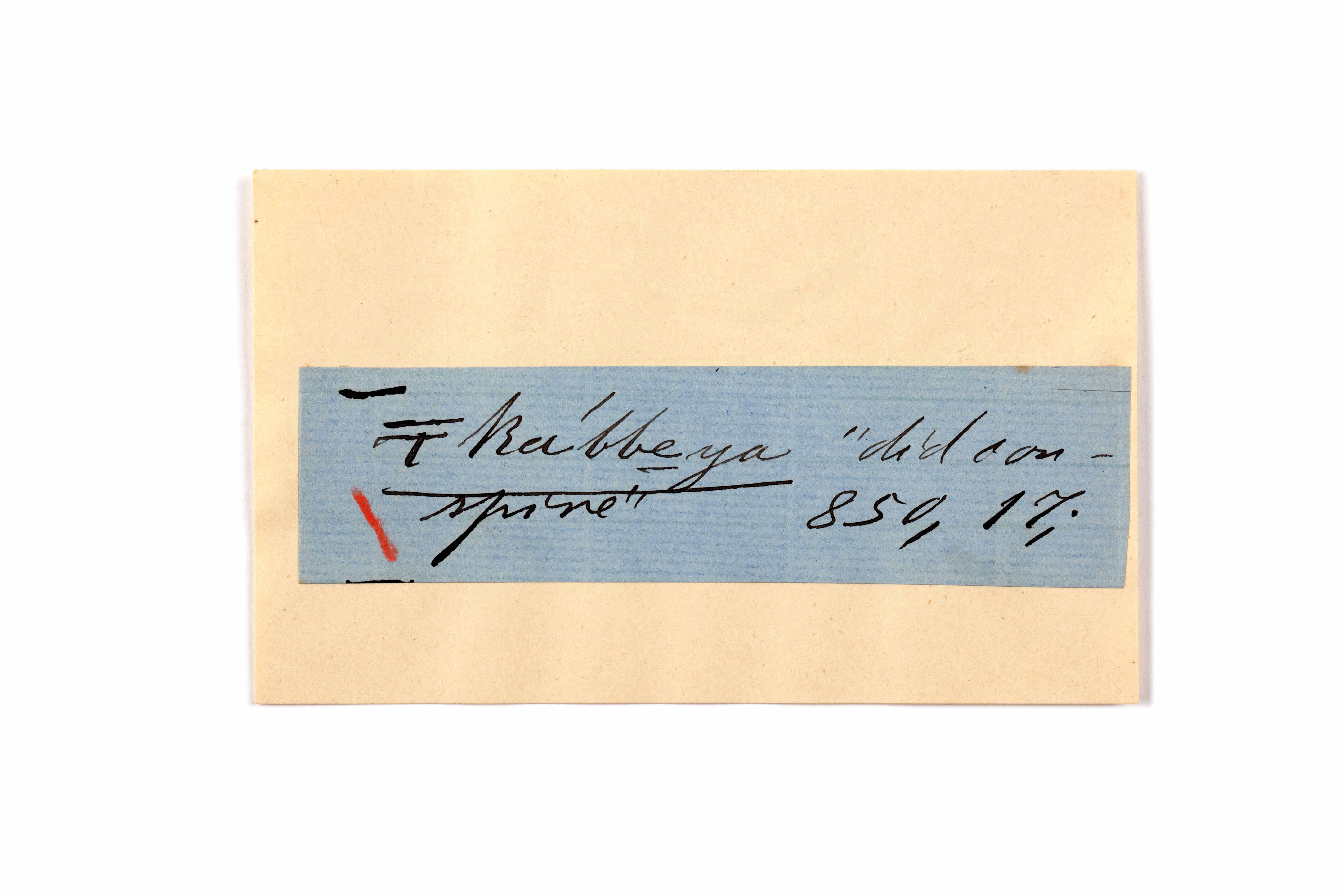ink on blue paper glued on card