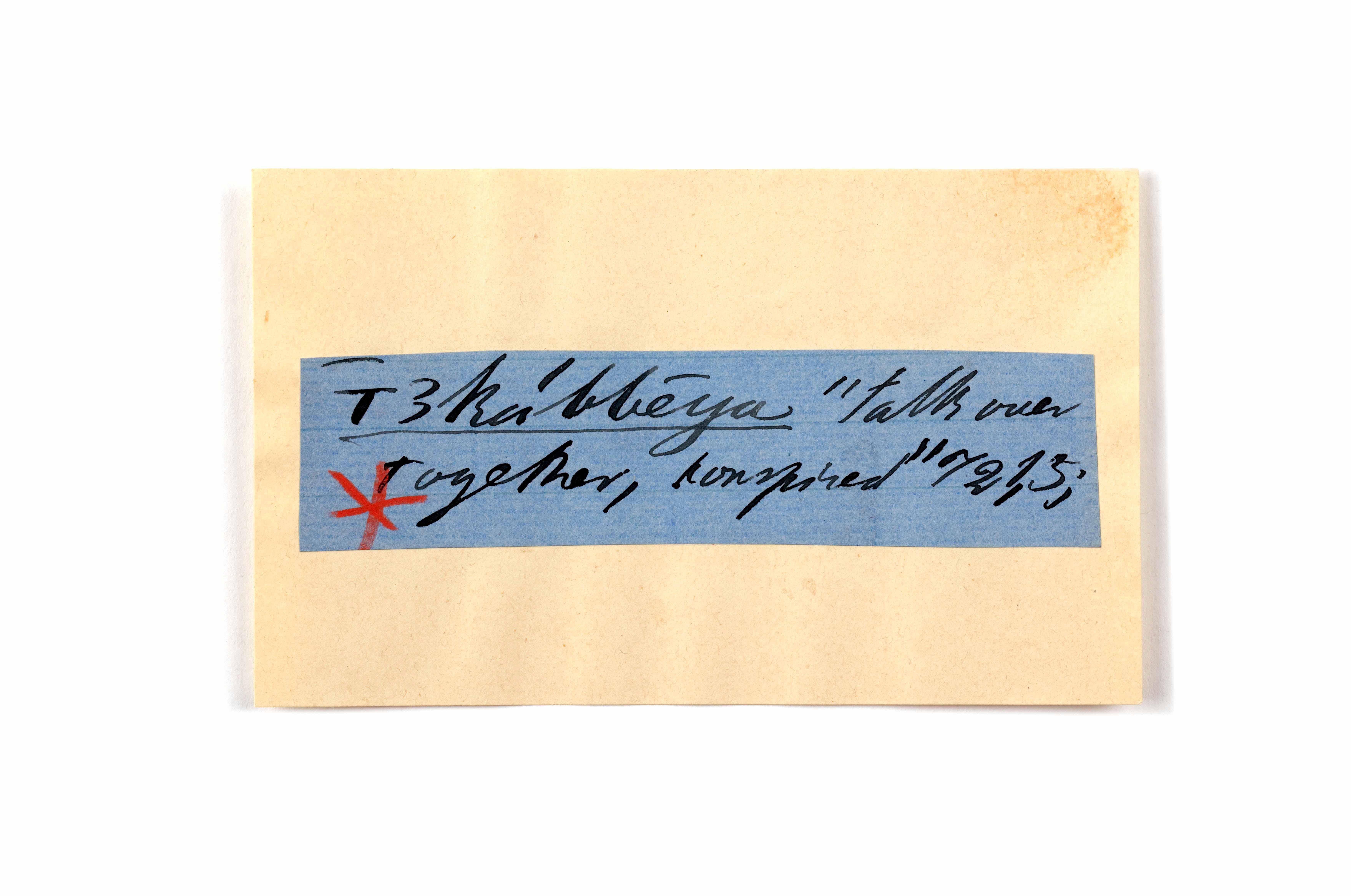 ink on blue paper glued on card