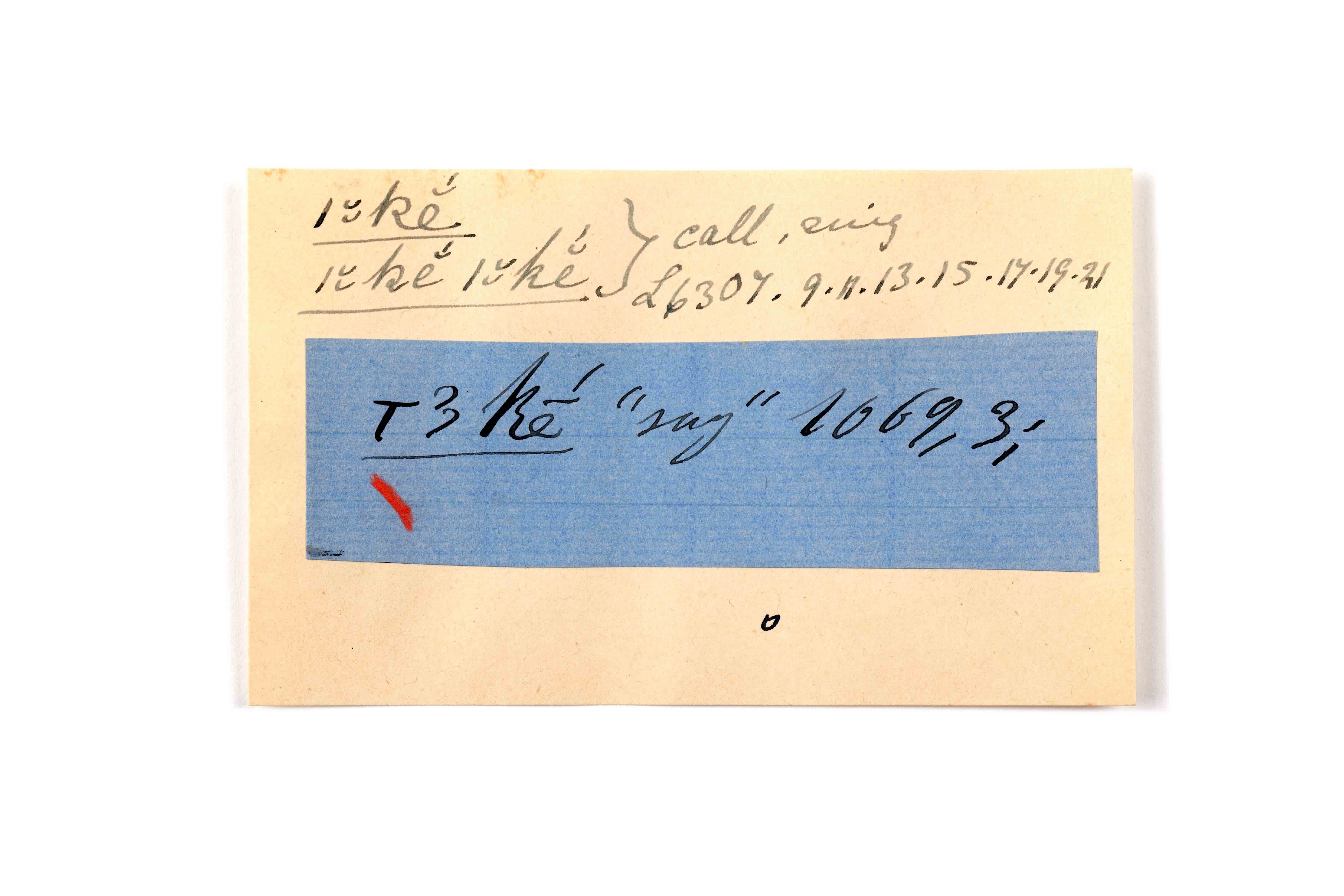 ink on blue paper glued on card