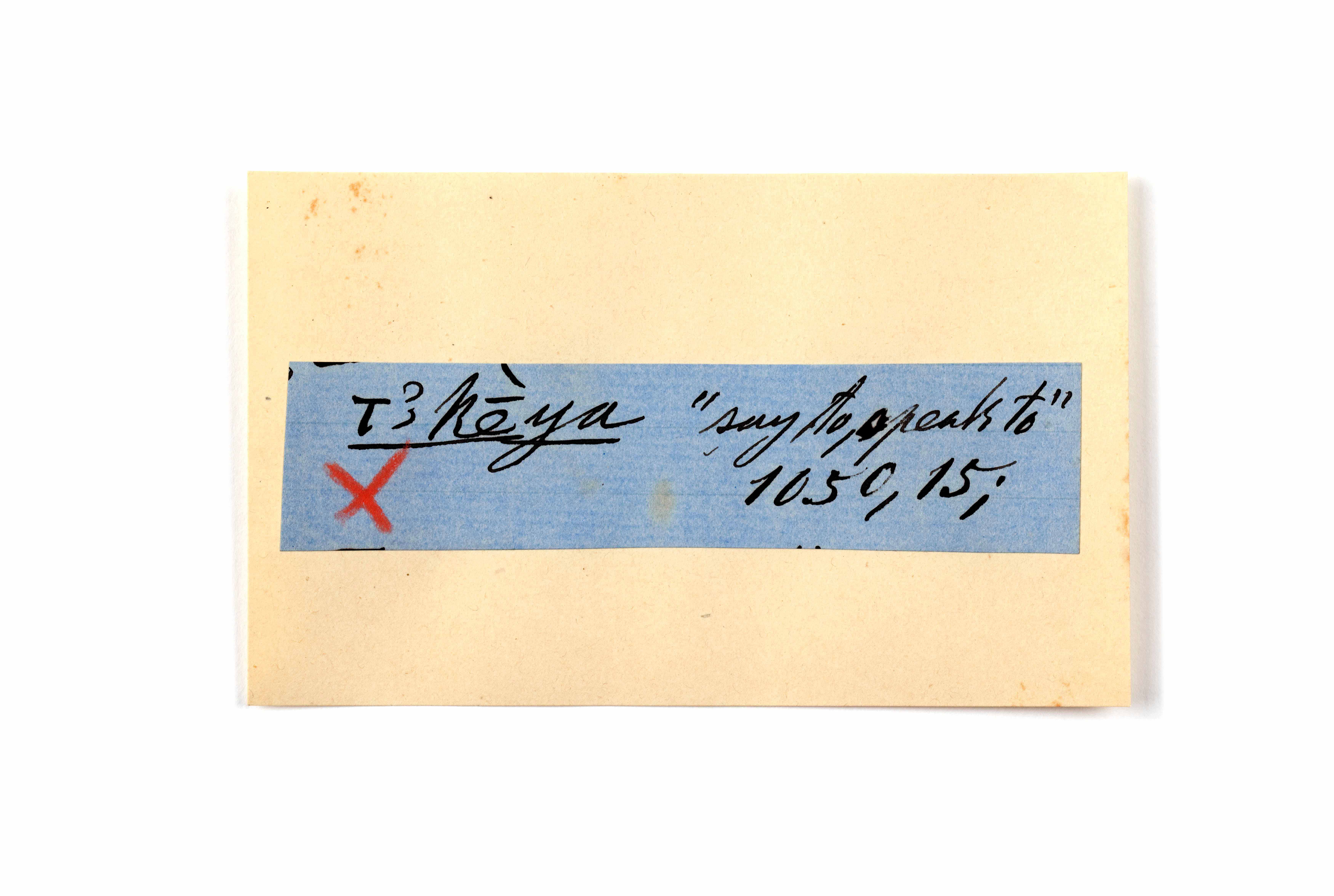 ink on blue paper glued on card