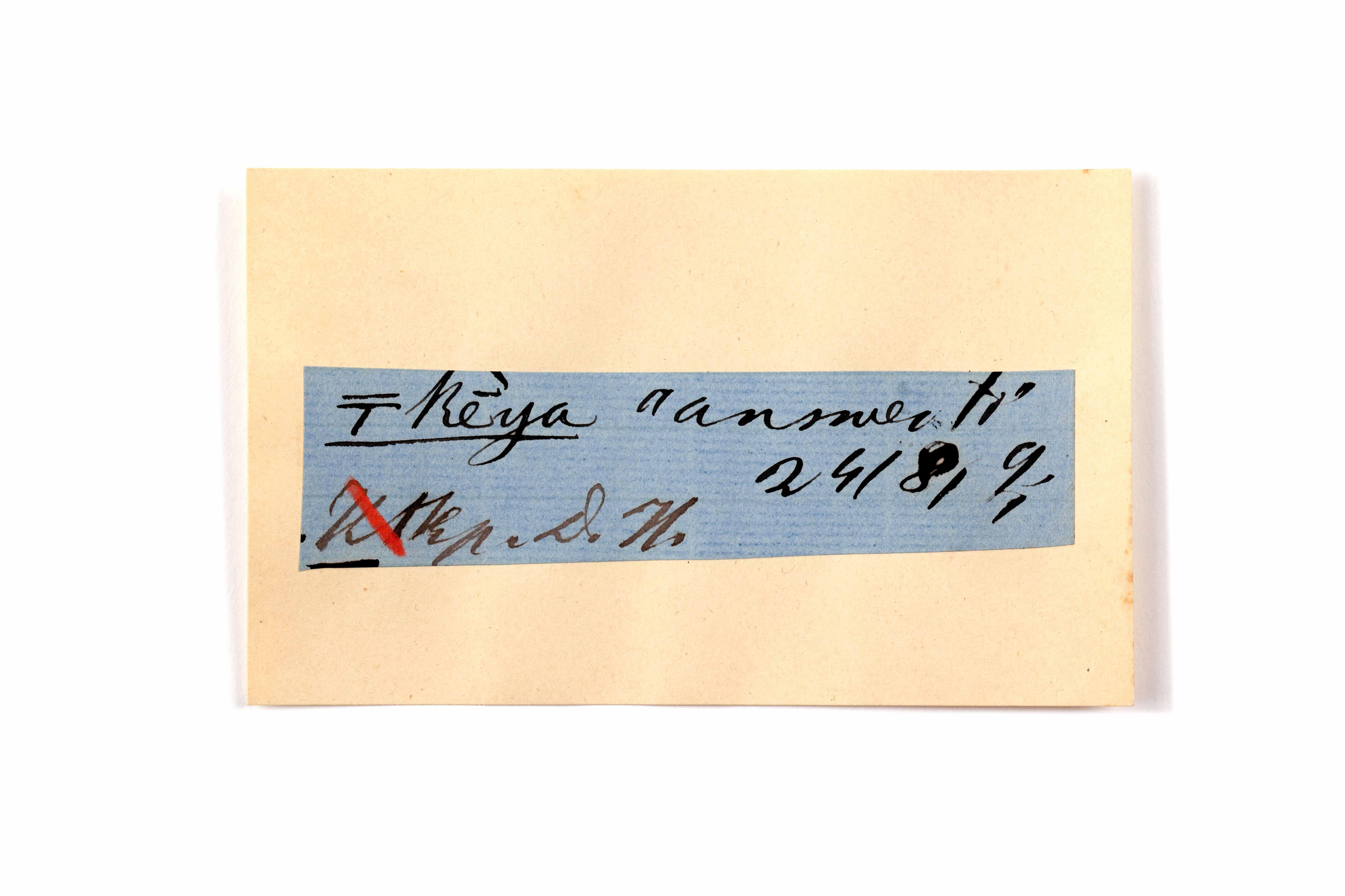 ink on blue paper glued on card