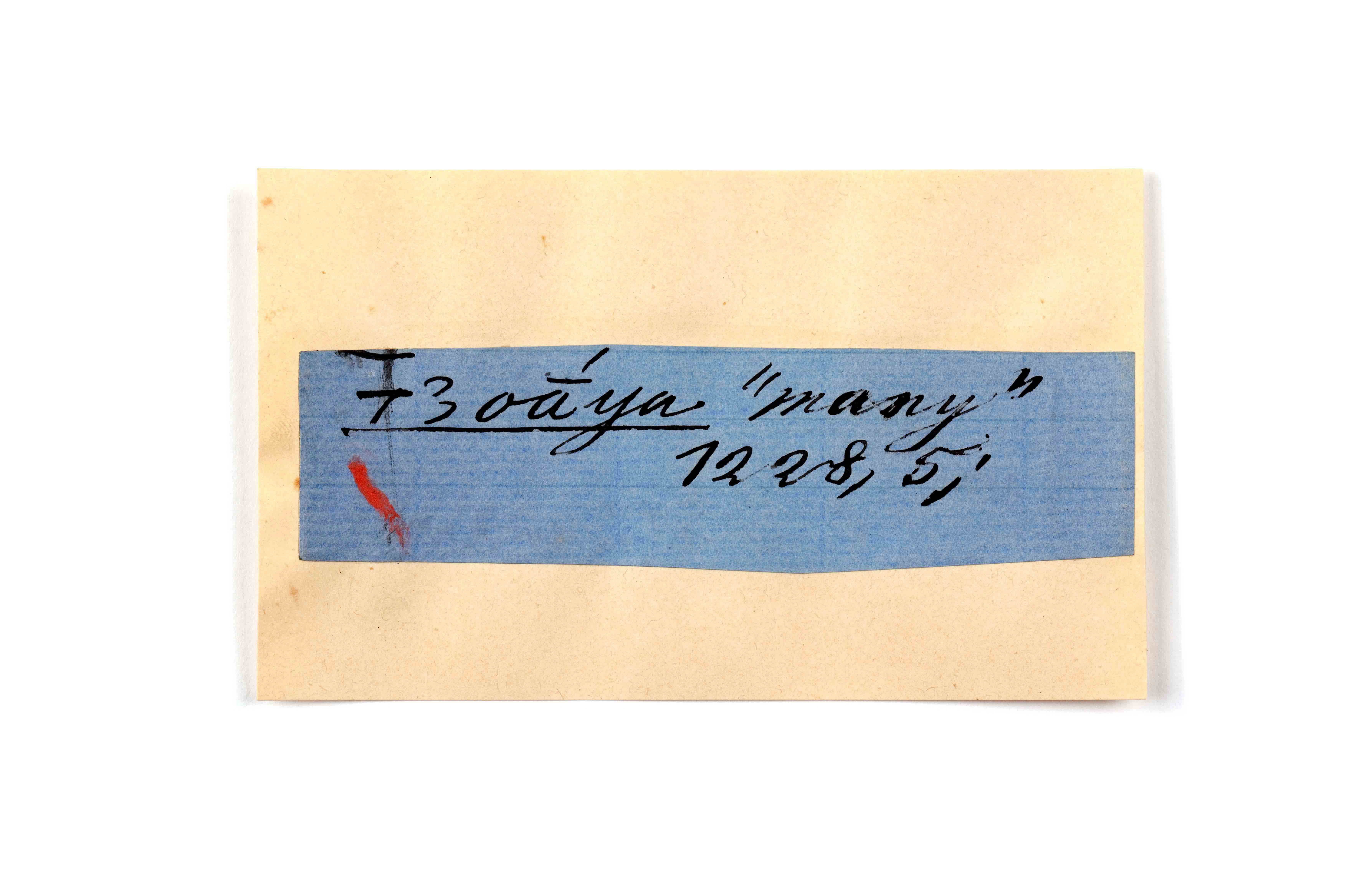 ink on blue paper glued on card