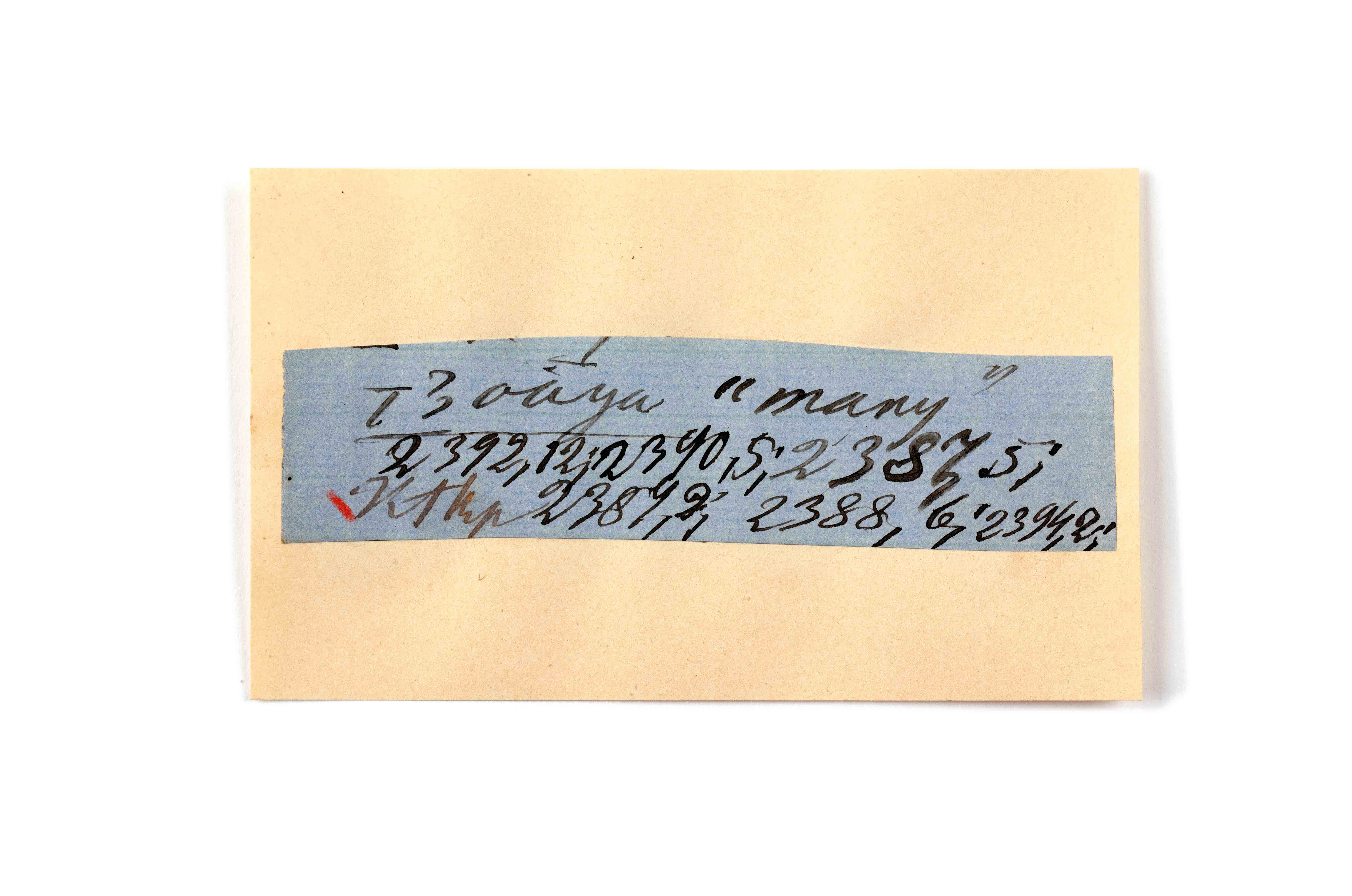 ink on blue paper glued on card