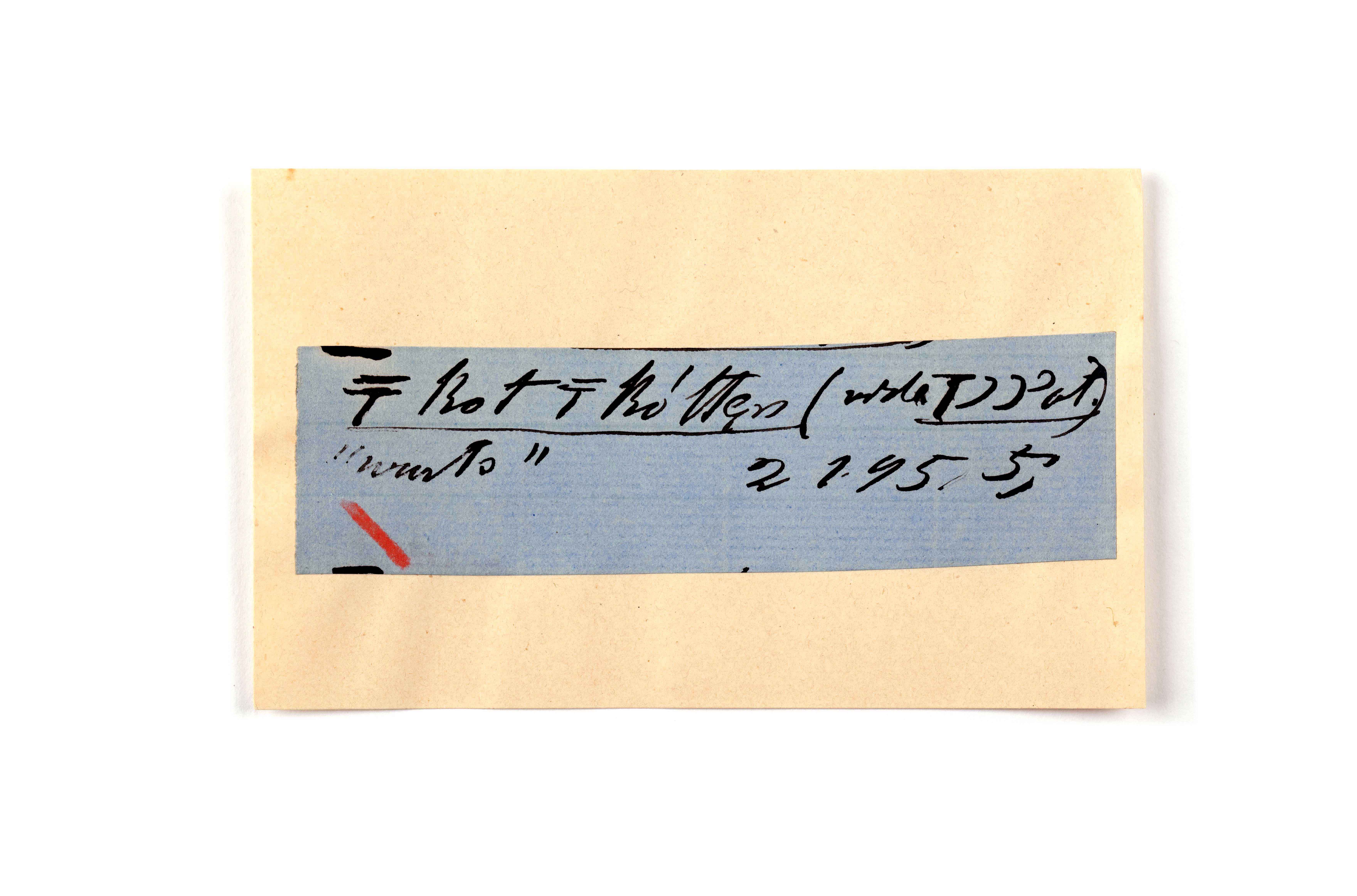 ink on blue paper glued on card