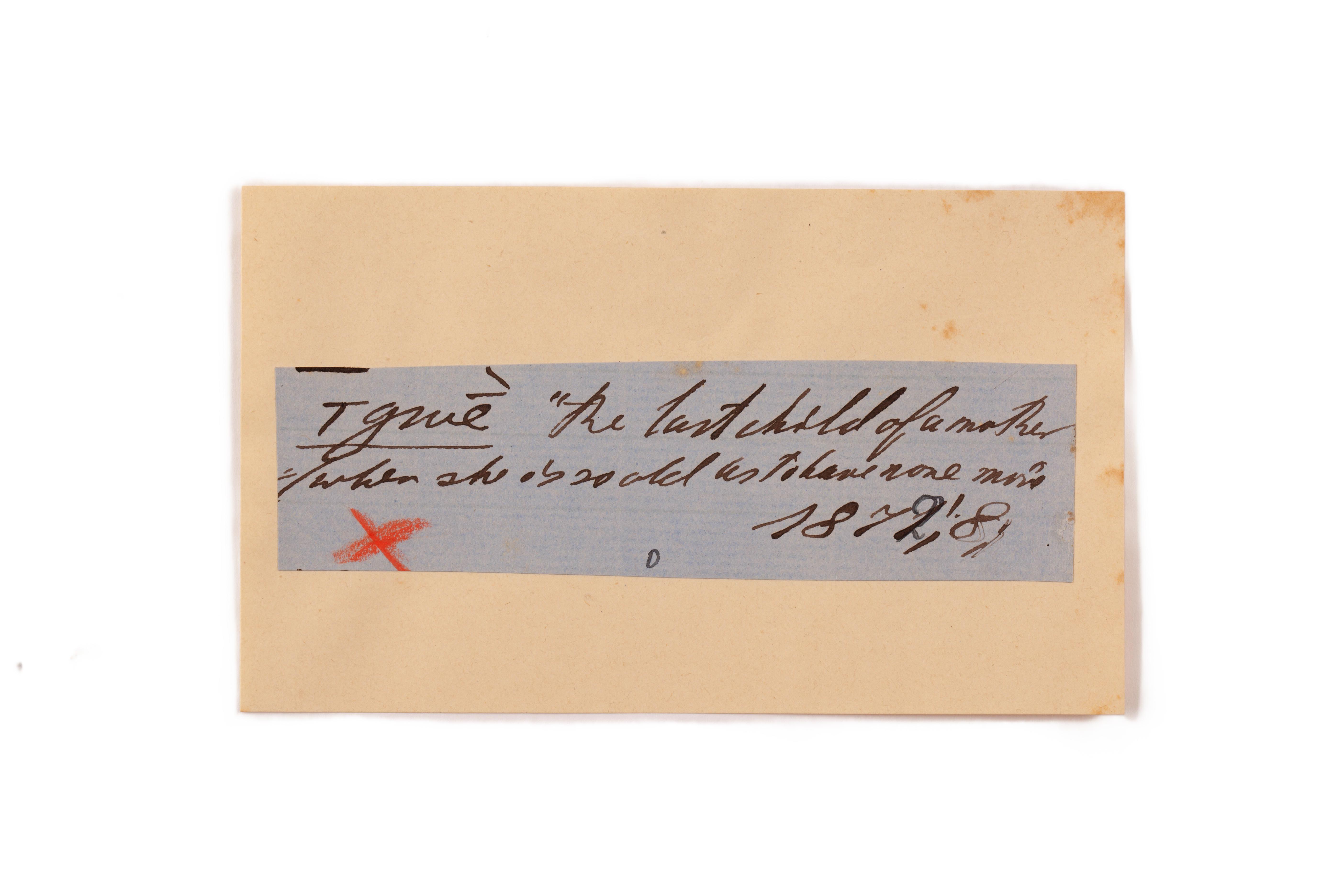 ink on blue paper glued on card