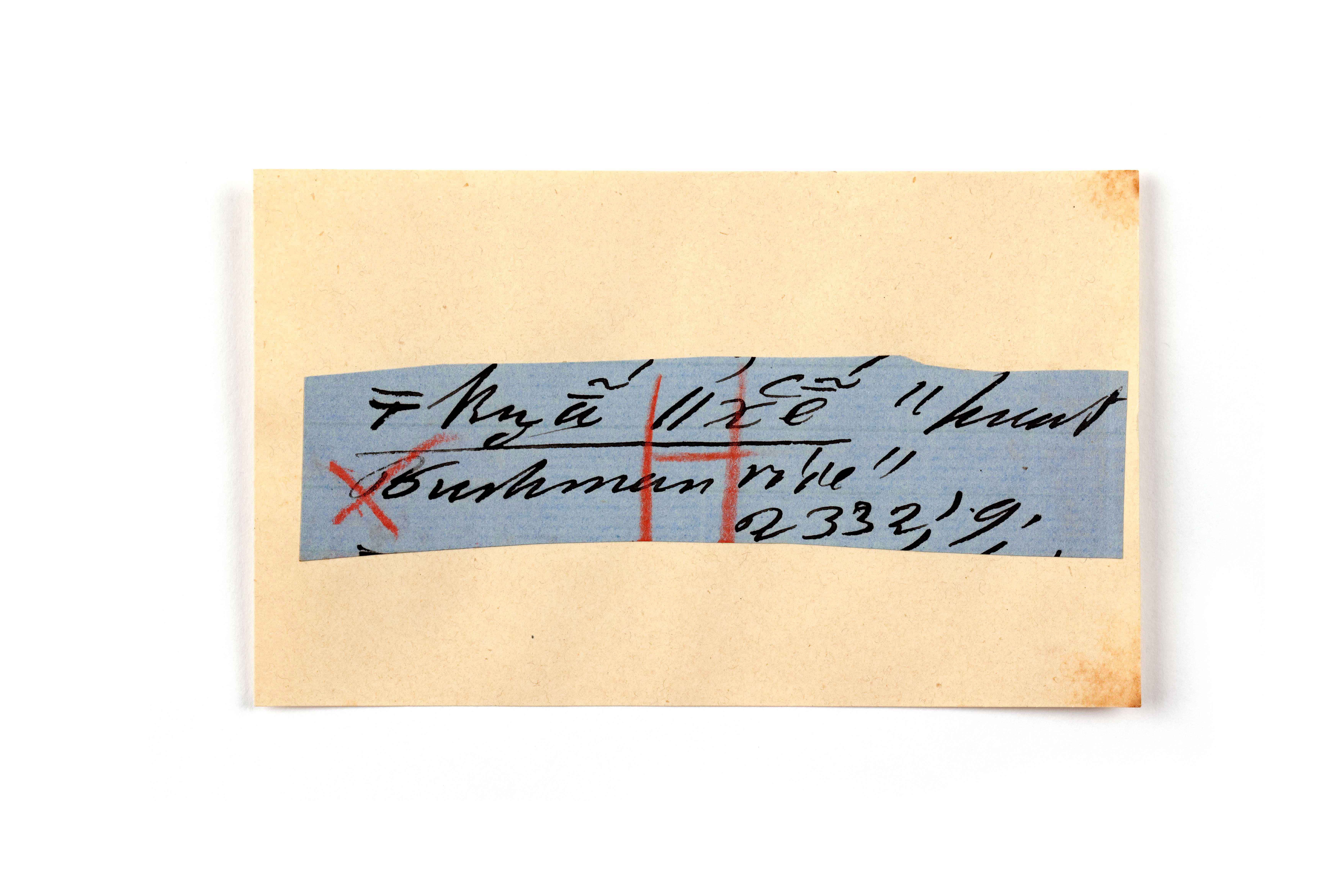 ink on blue paper glued on card