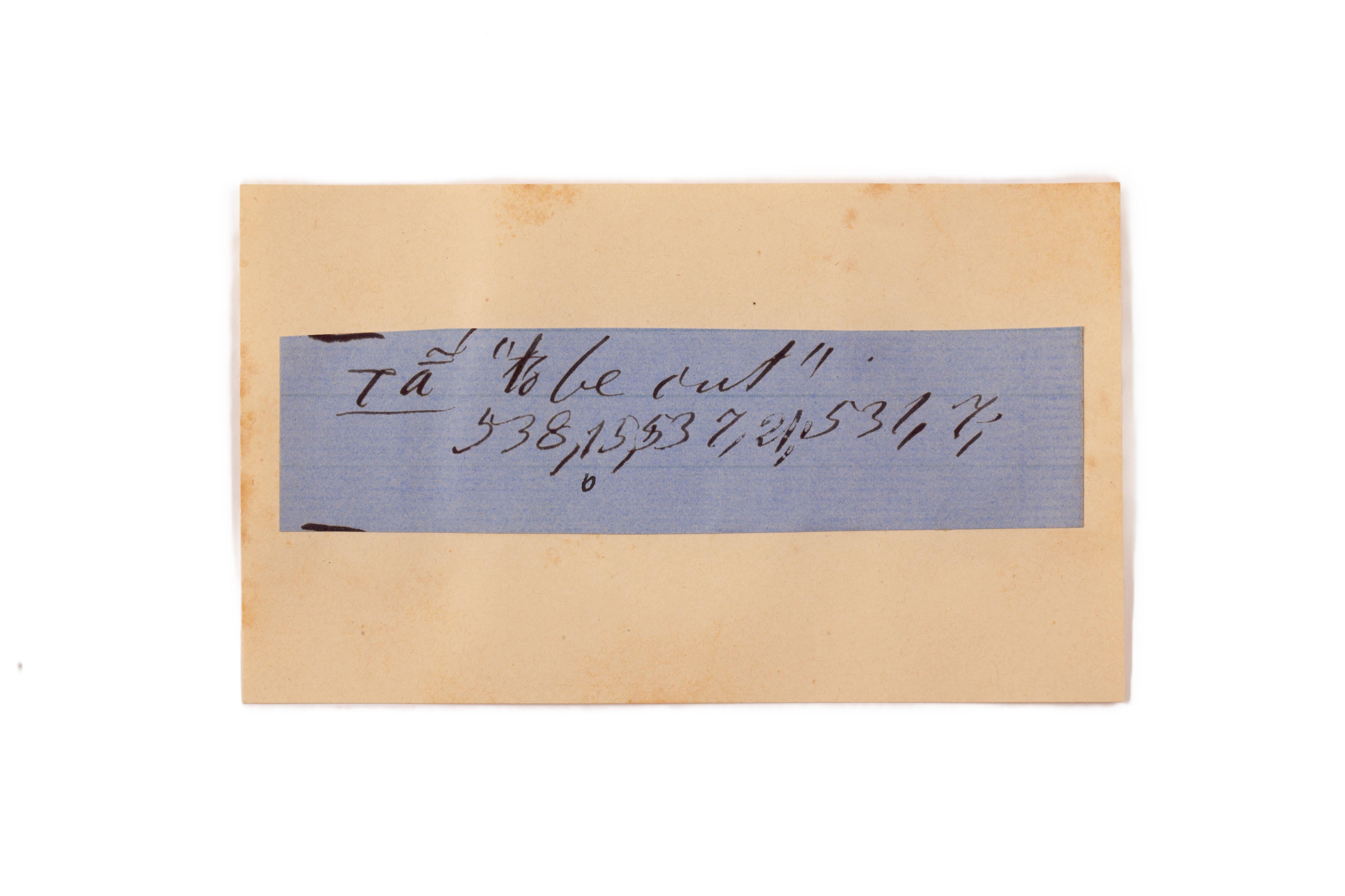 ink on blue paper glued on card