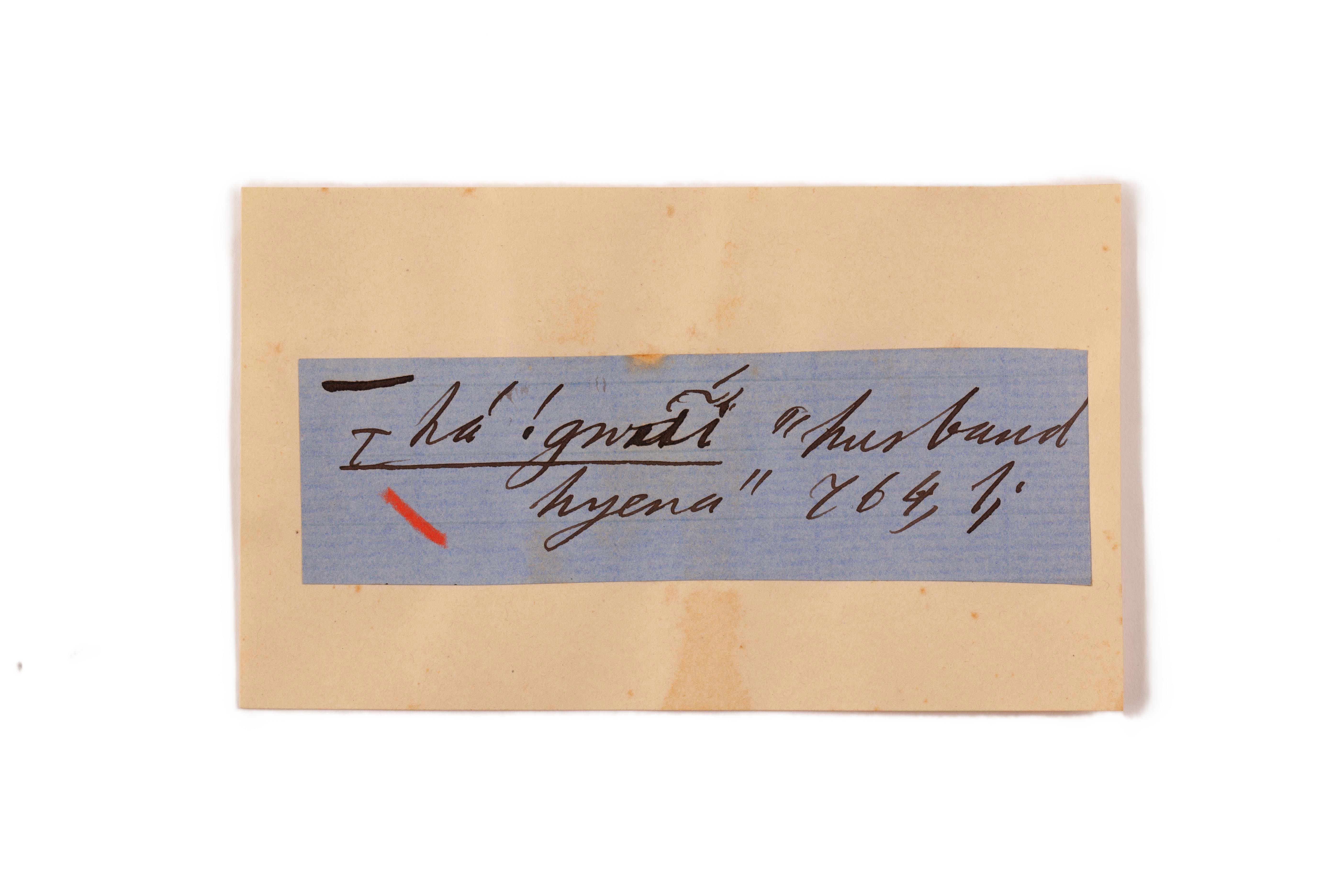 ink on blue paper glued on card