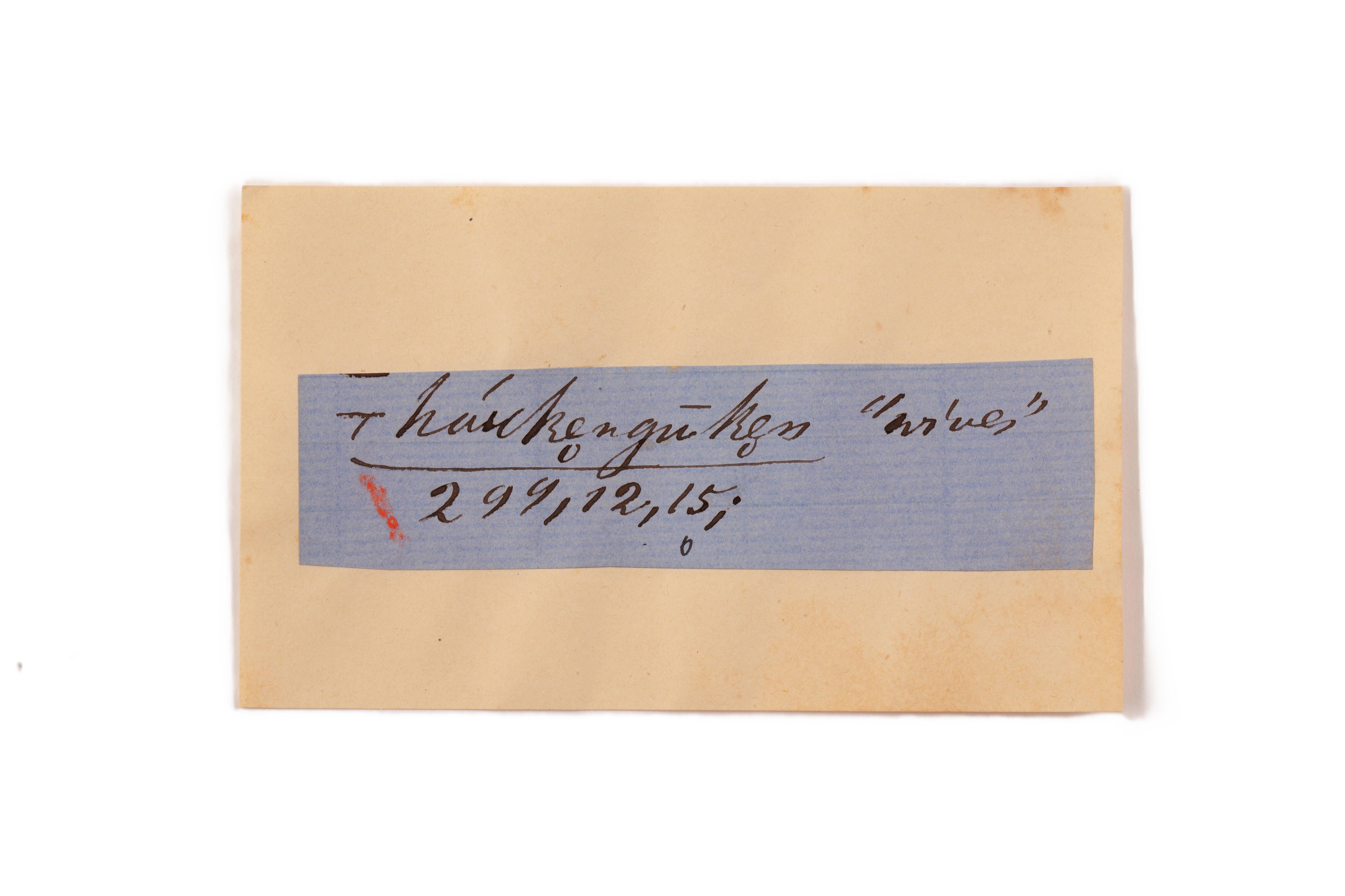 ink on blue paper glued on card