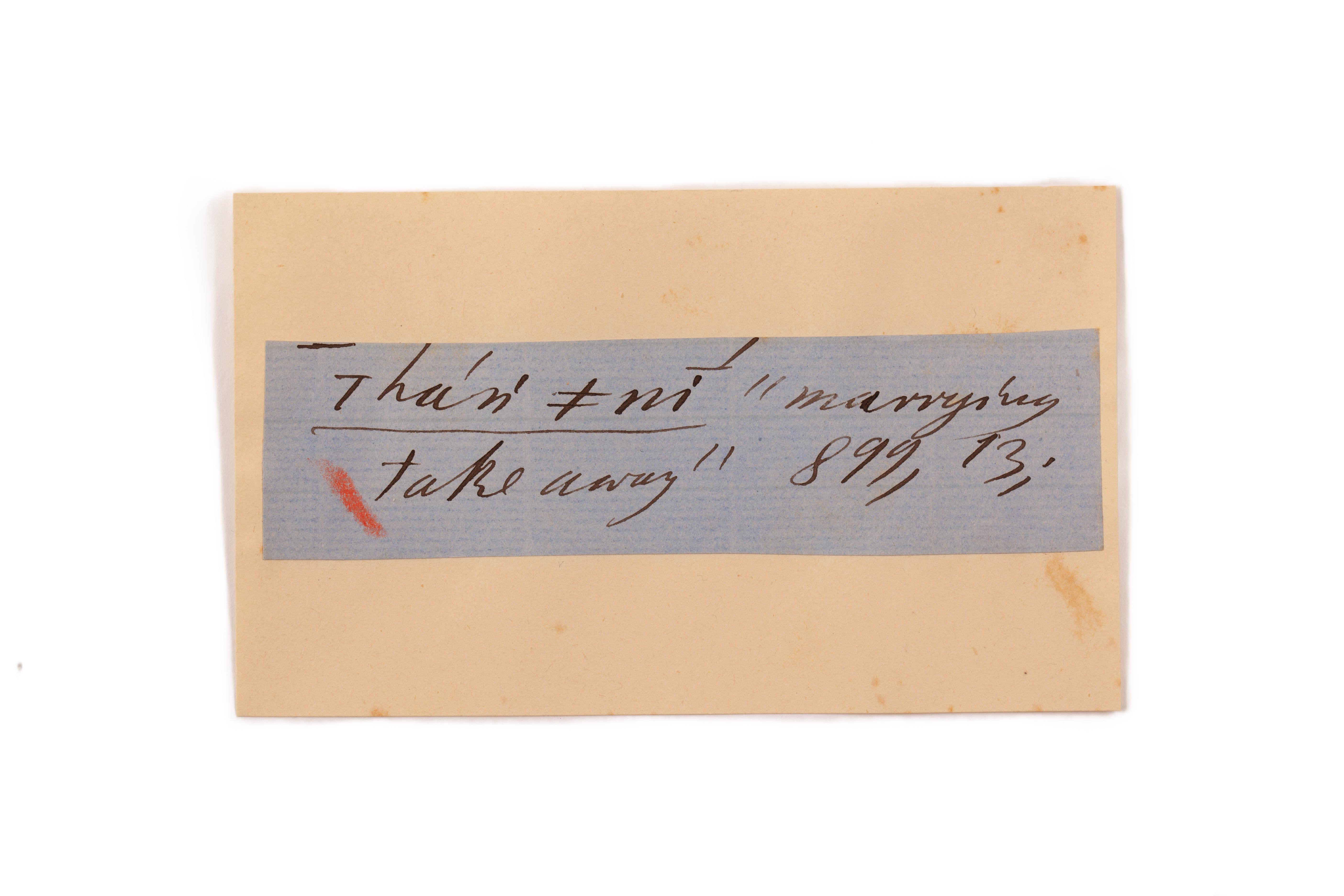 ink on blue paper glued on card