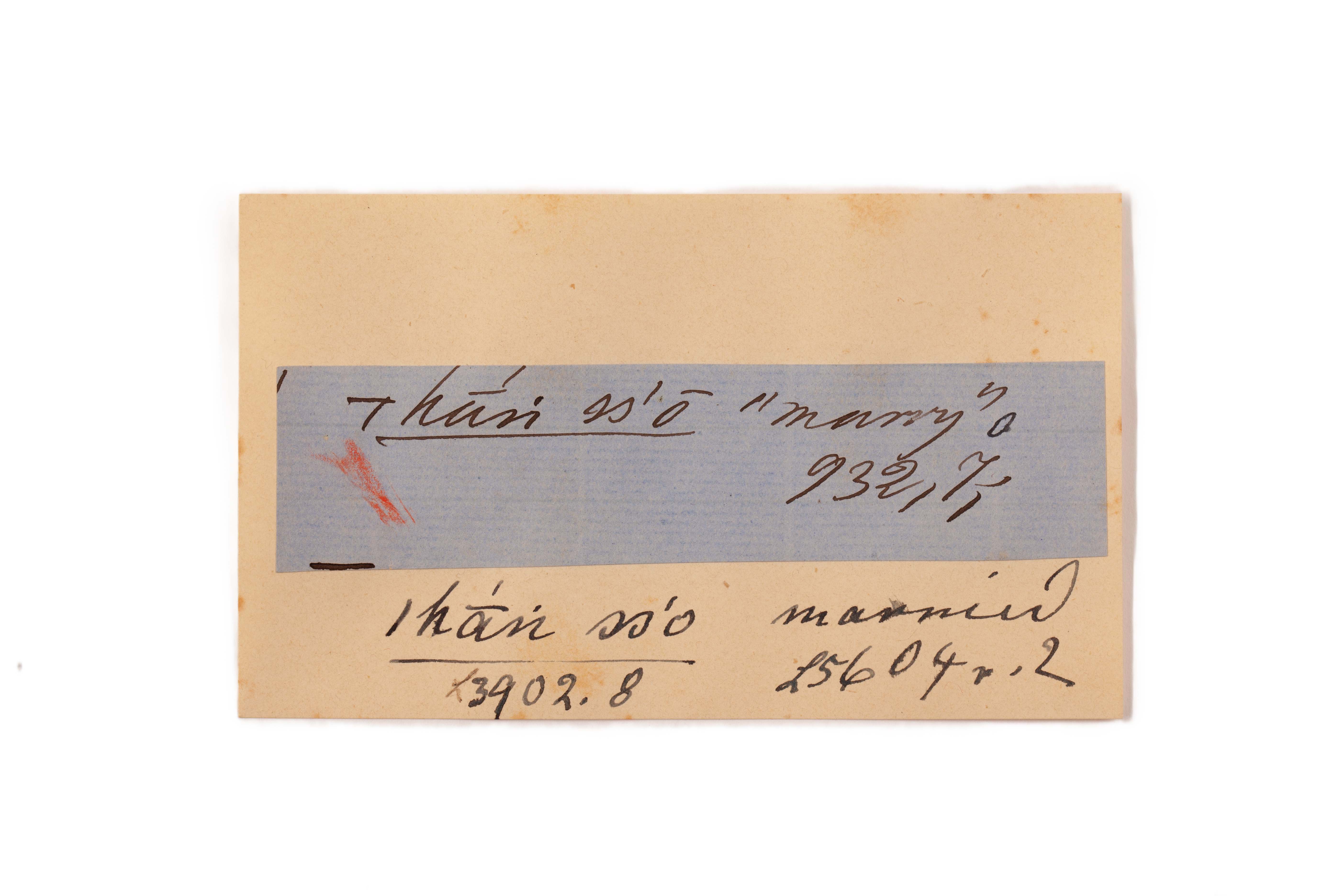 ink on blue paper glued on card