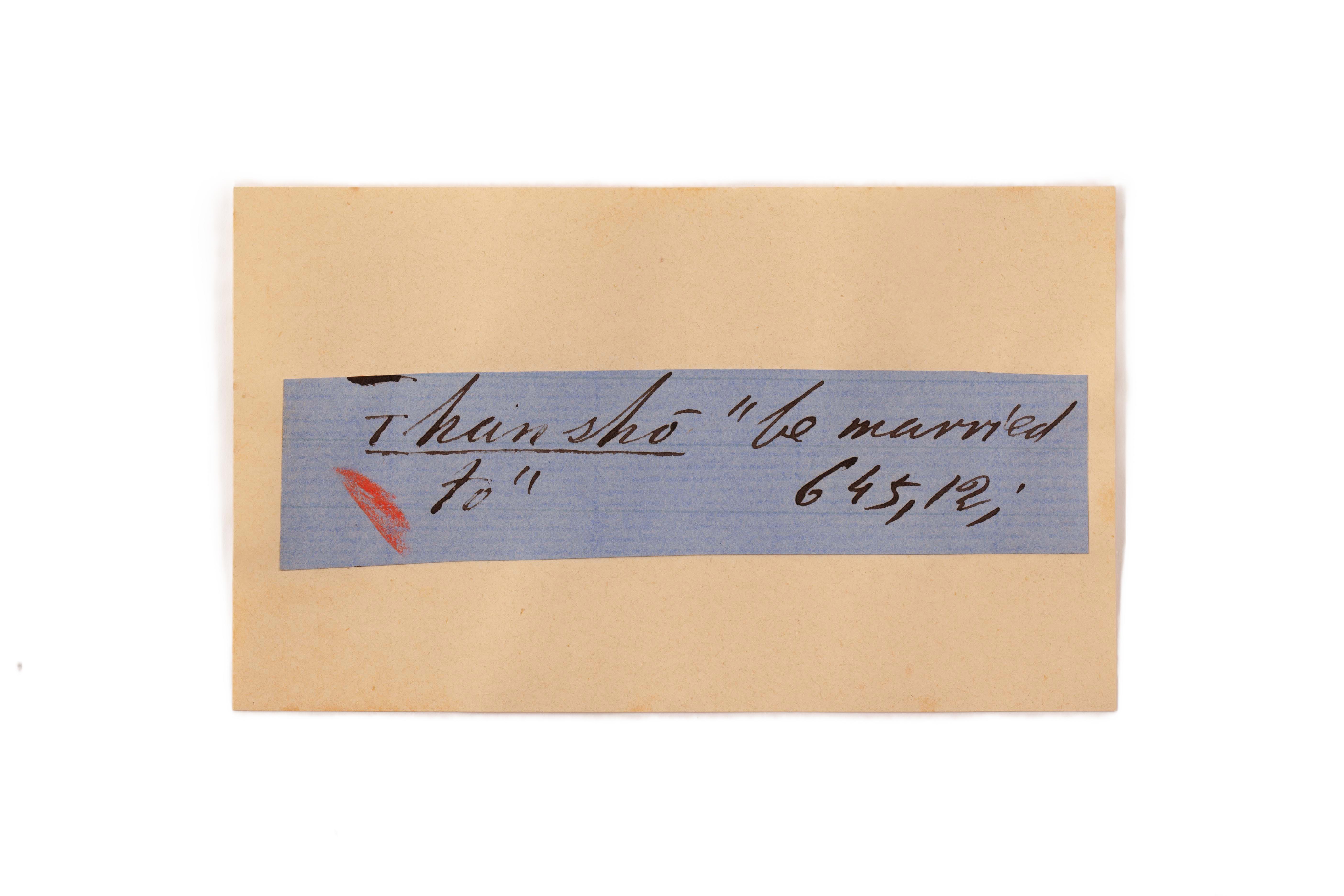 ink on blue paper glued on card