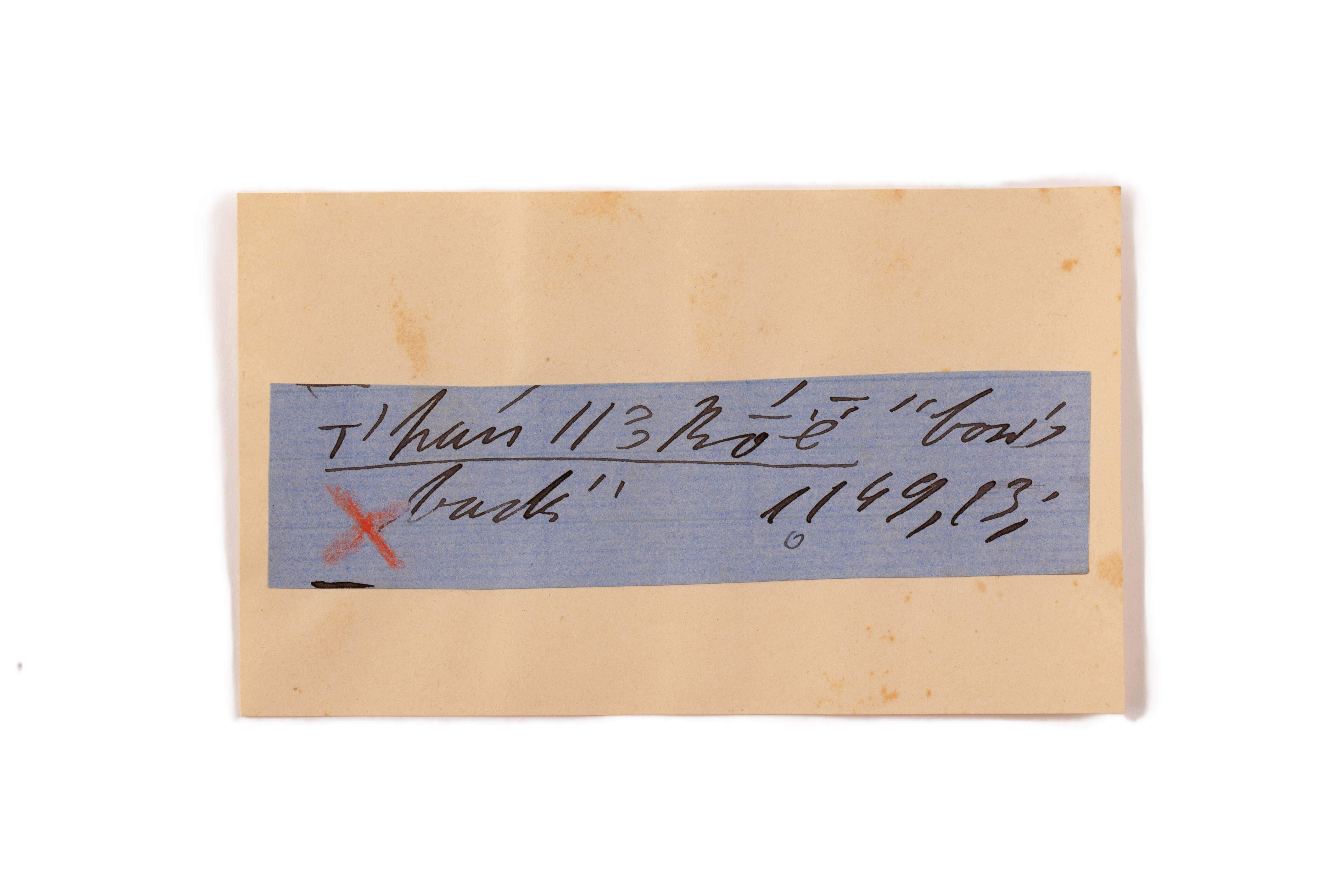 ink on blue paper glued on card