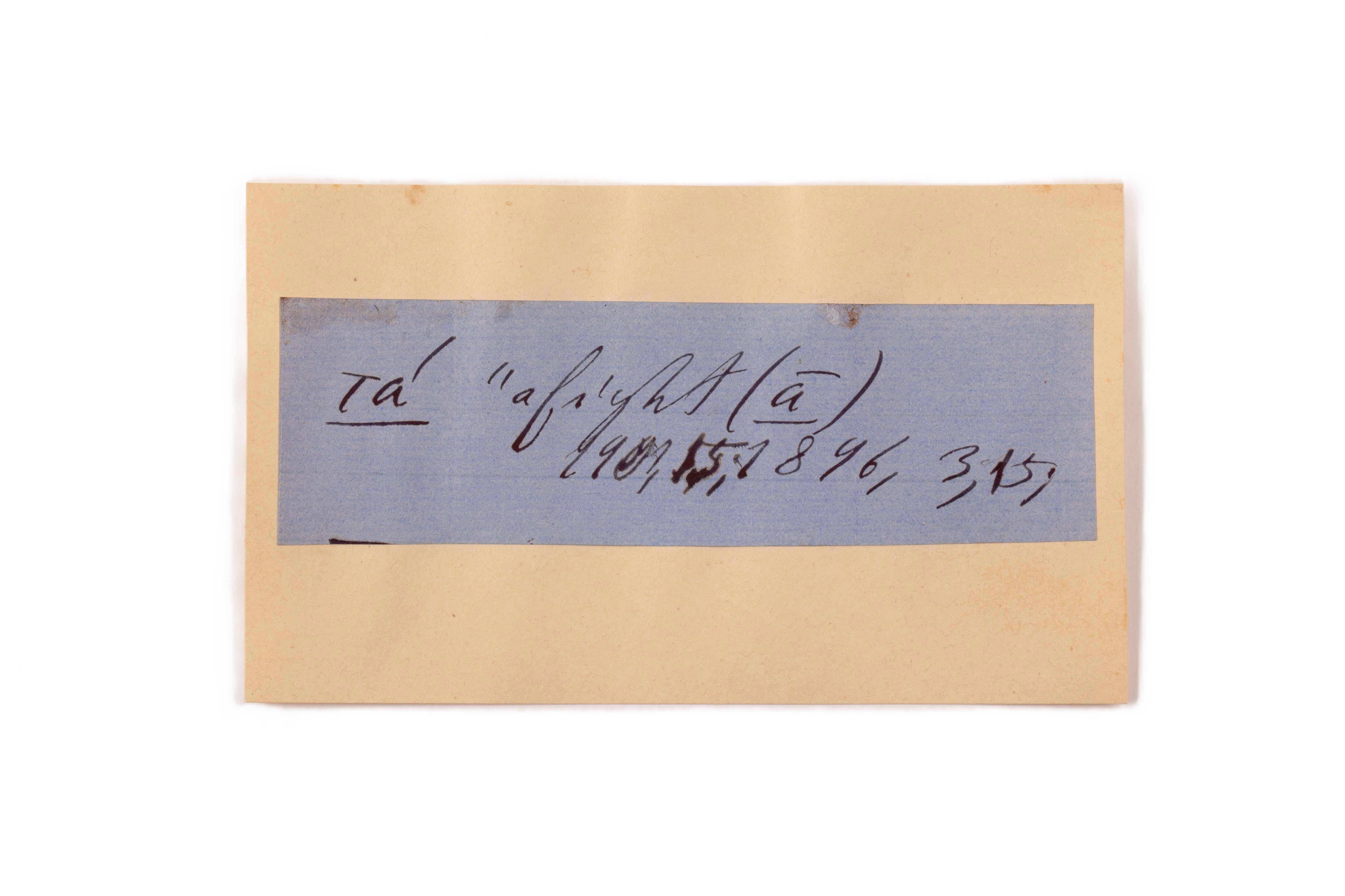 ink on blue paper glued on card