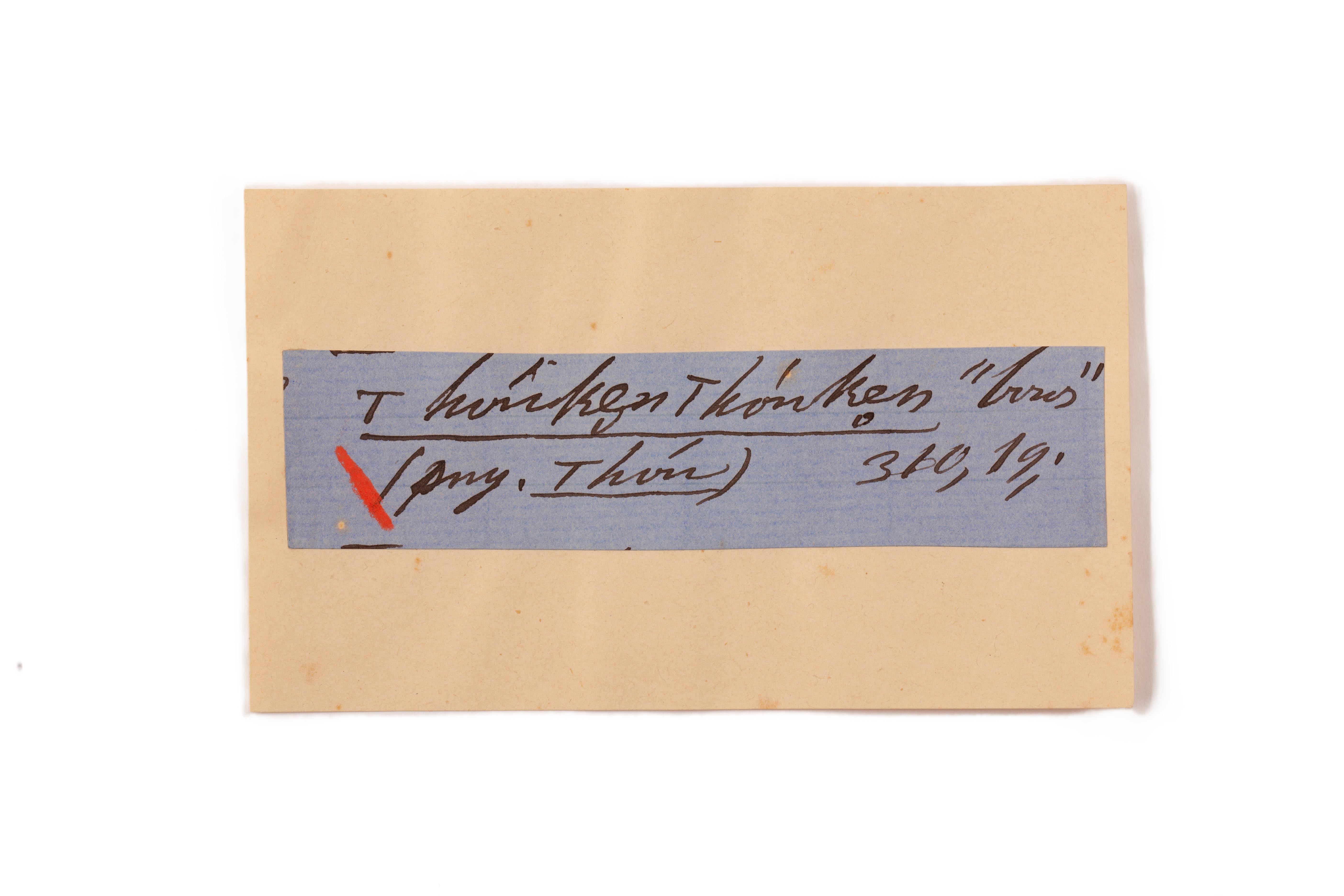 ink on blue paper glued on card