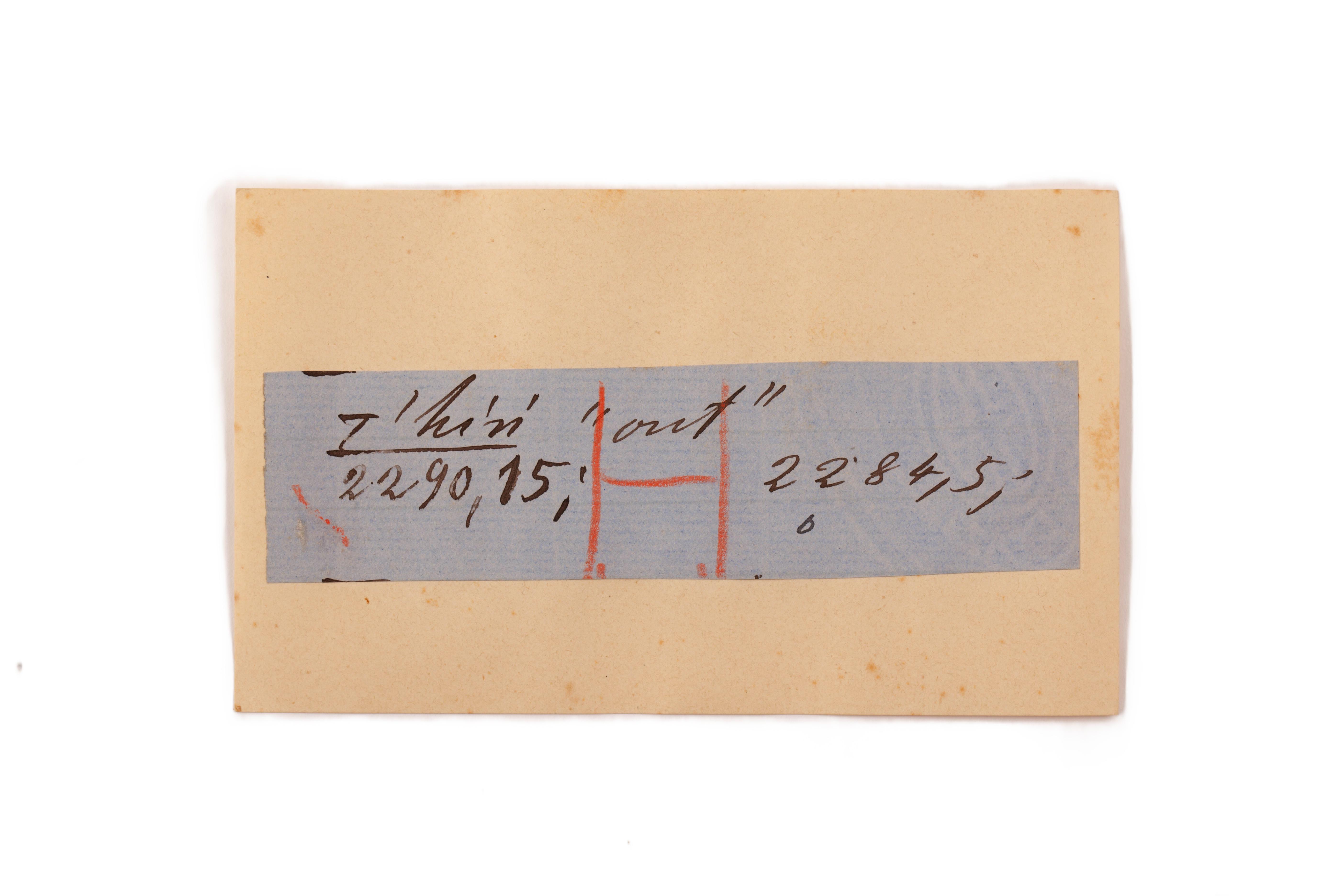 ink on blue paper glued on card