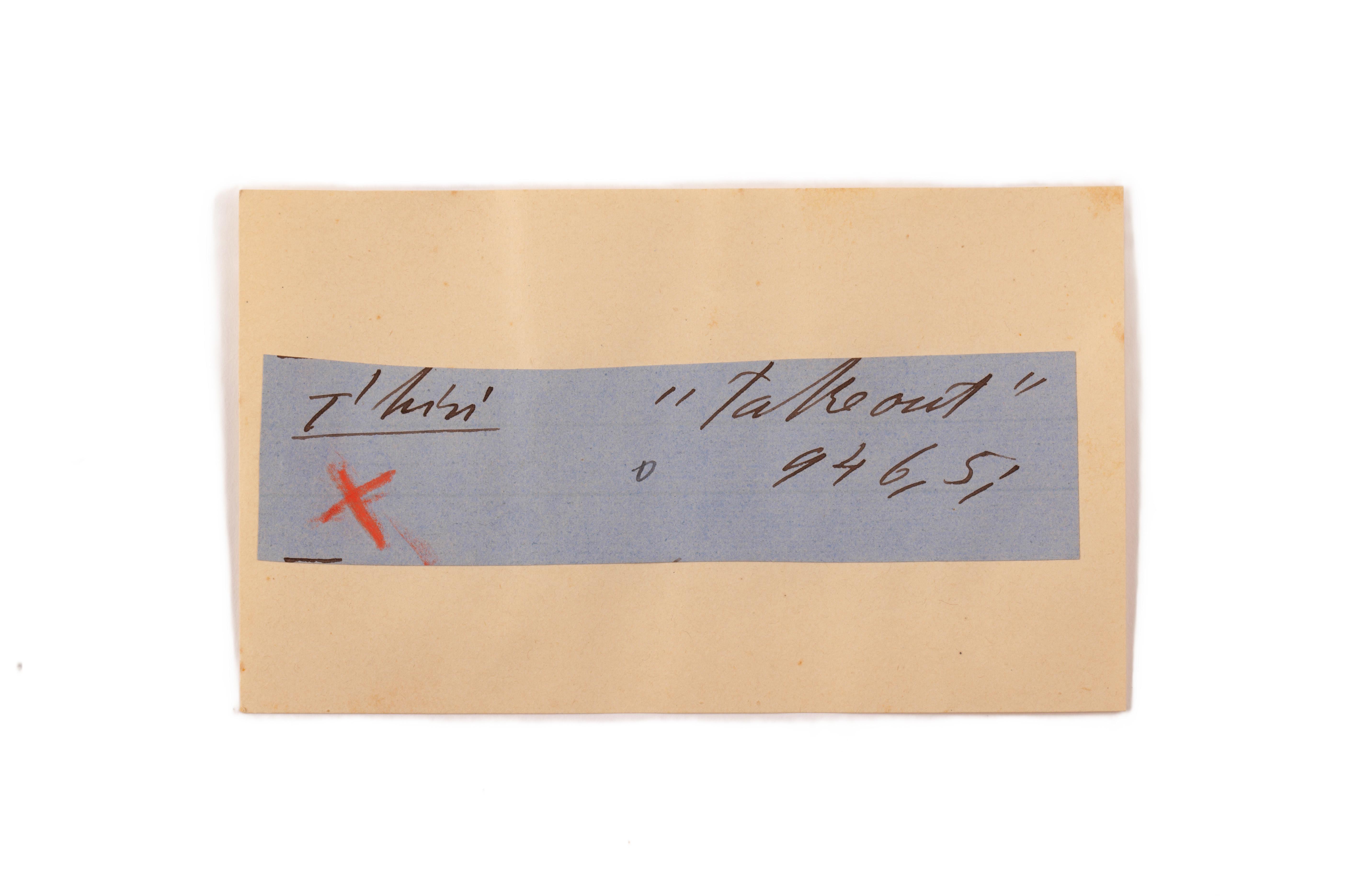 ink on blue paper glued on card