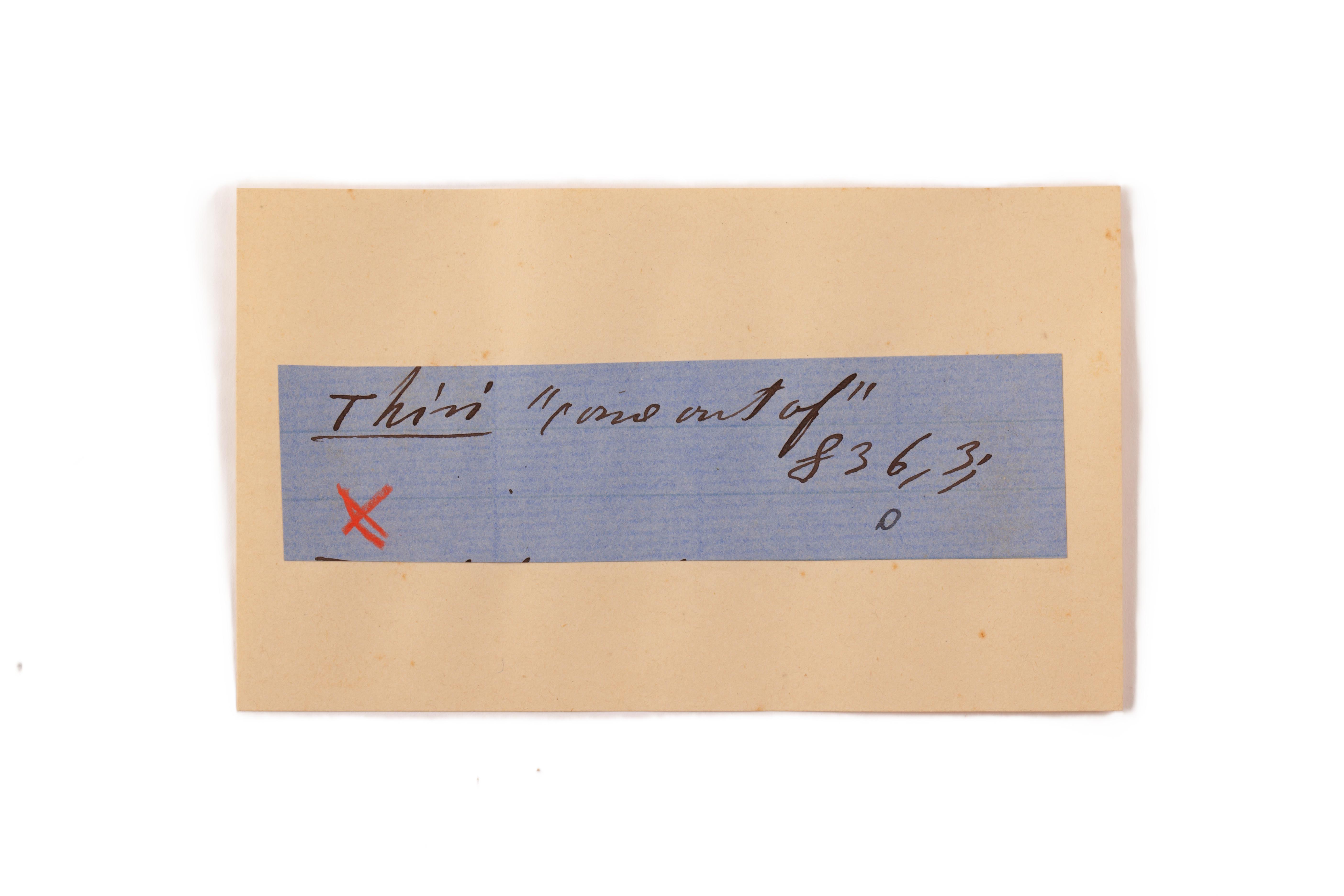 ink on blue paper glued on card