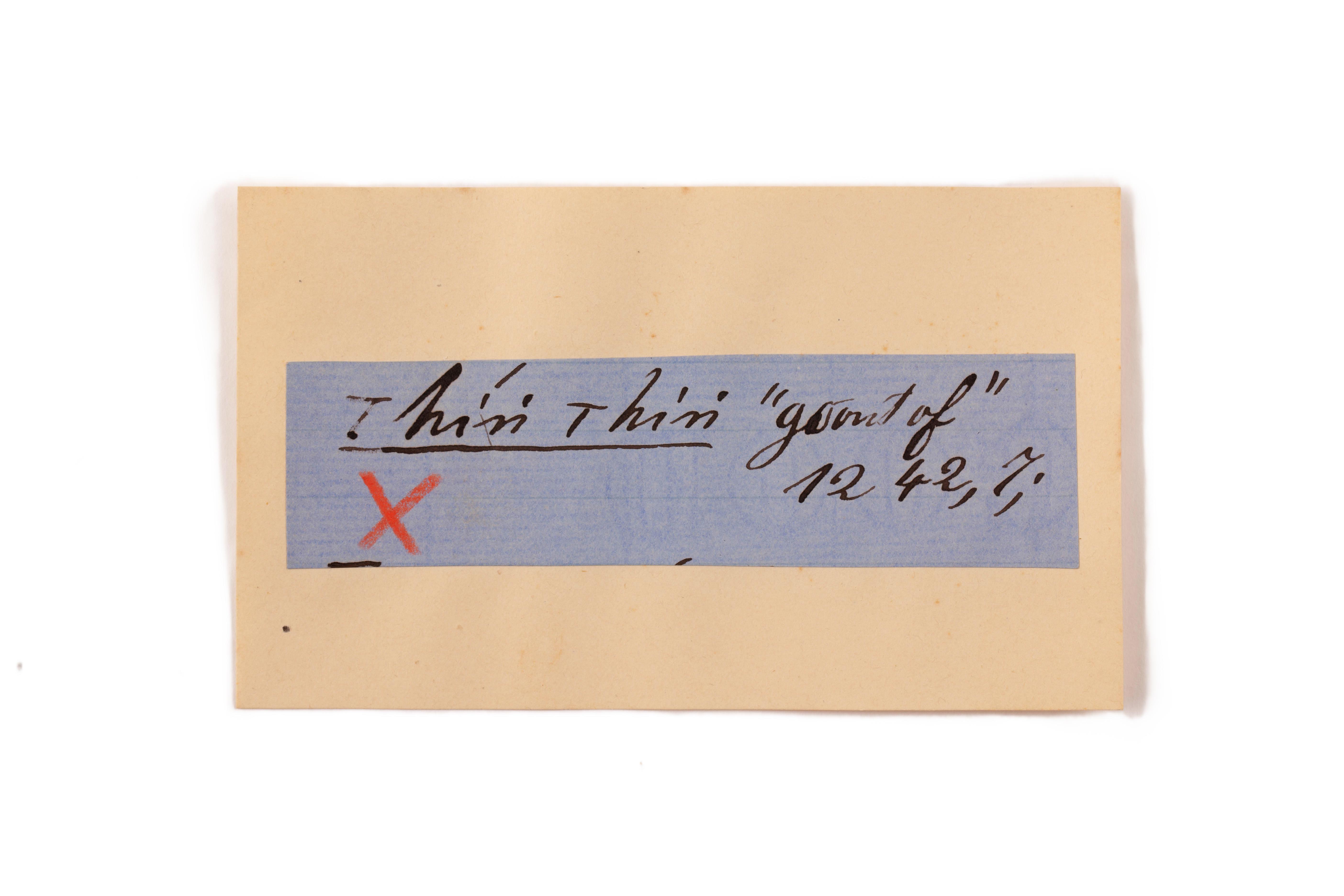 ink on blue paper glued on card