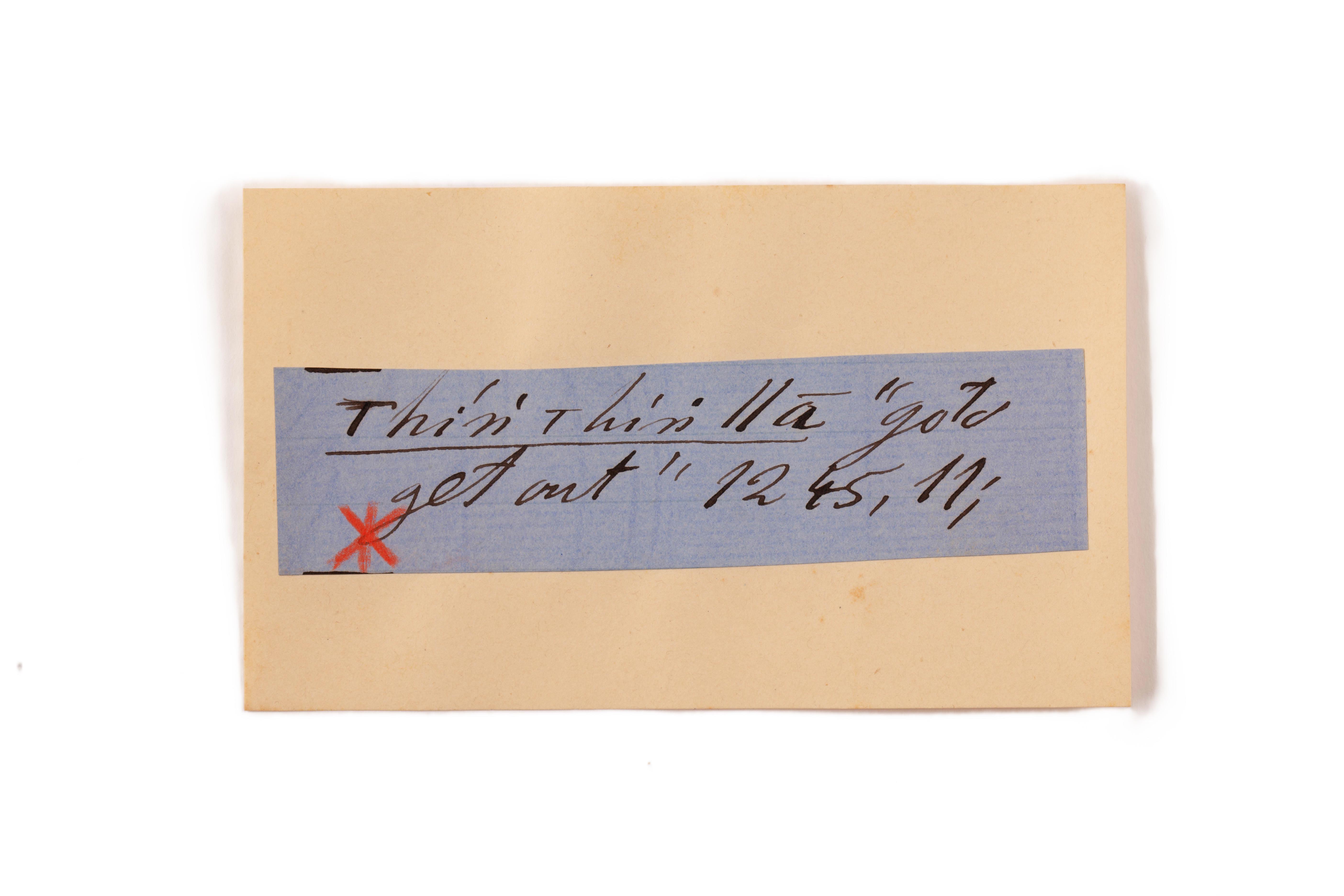 ink on blue paper glued on card
