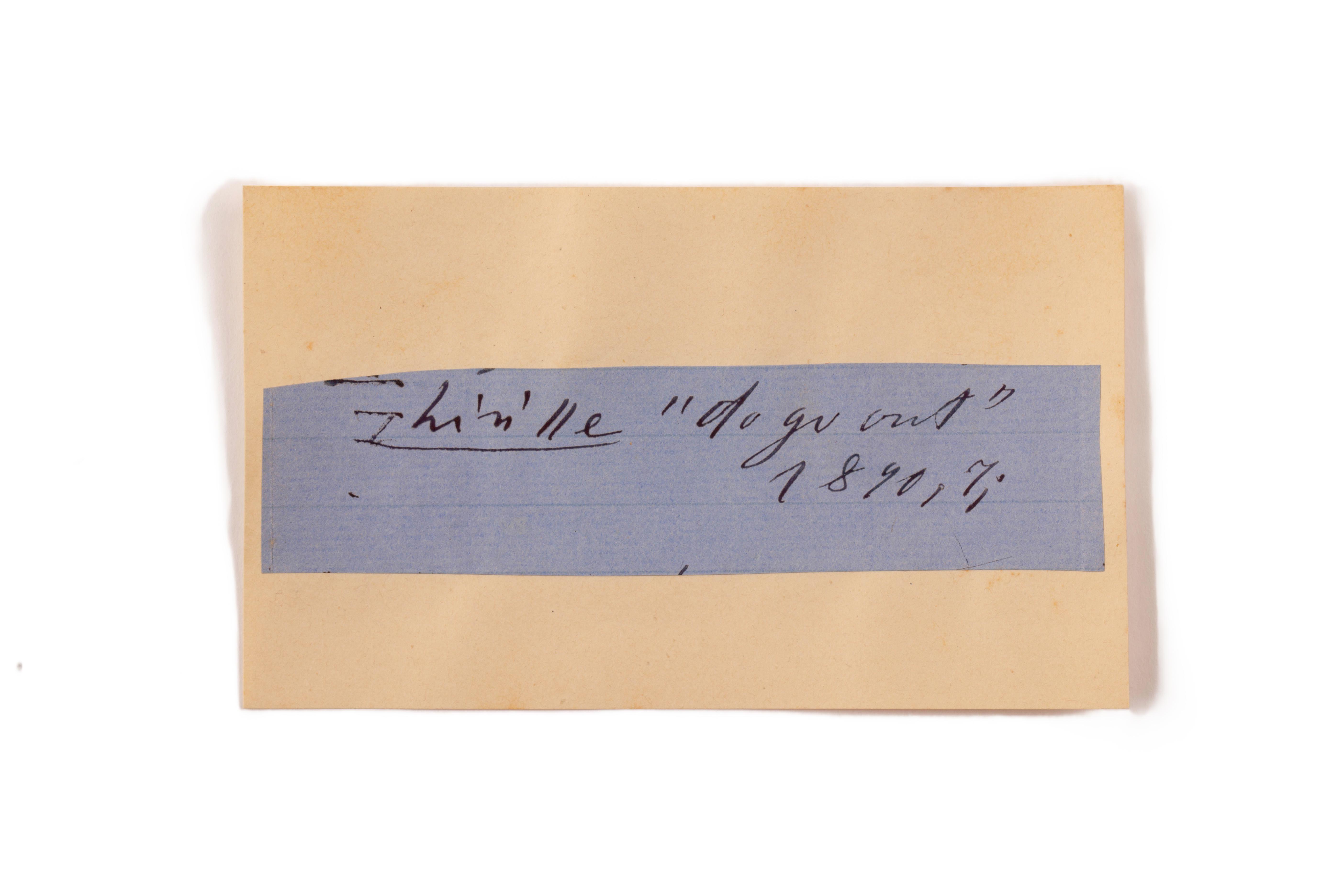 ink on blue paper glued on card