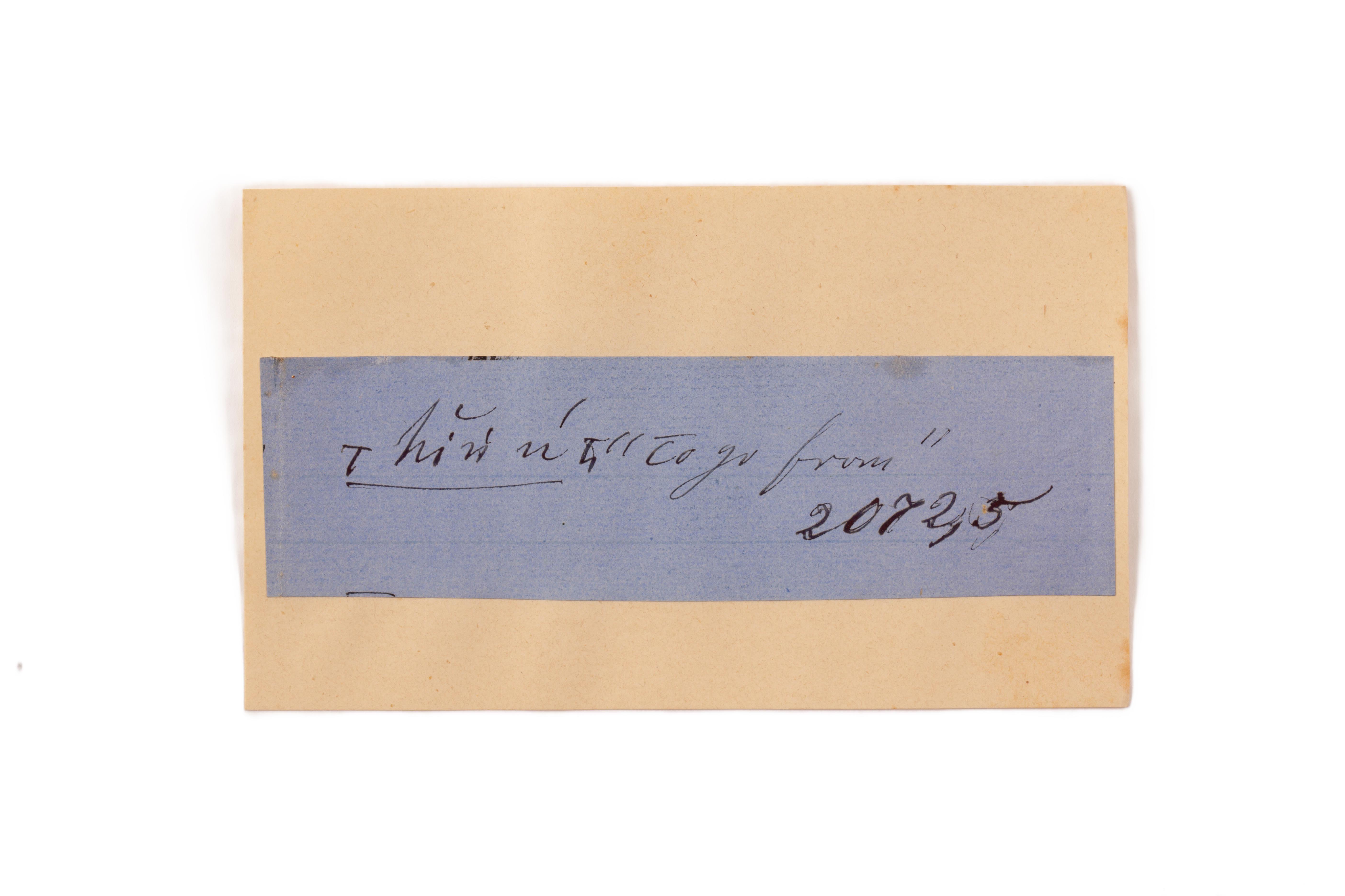 ink on blue paper glued on card