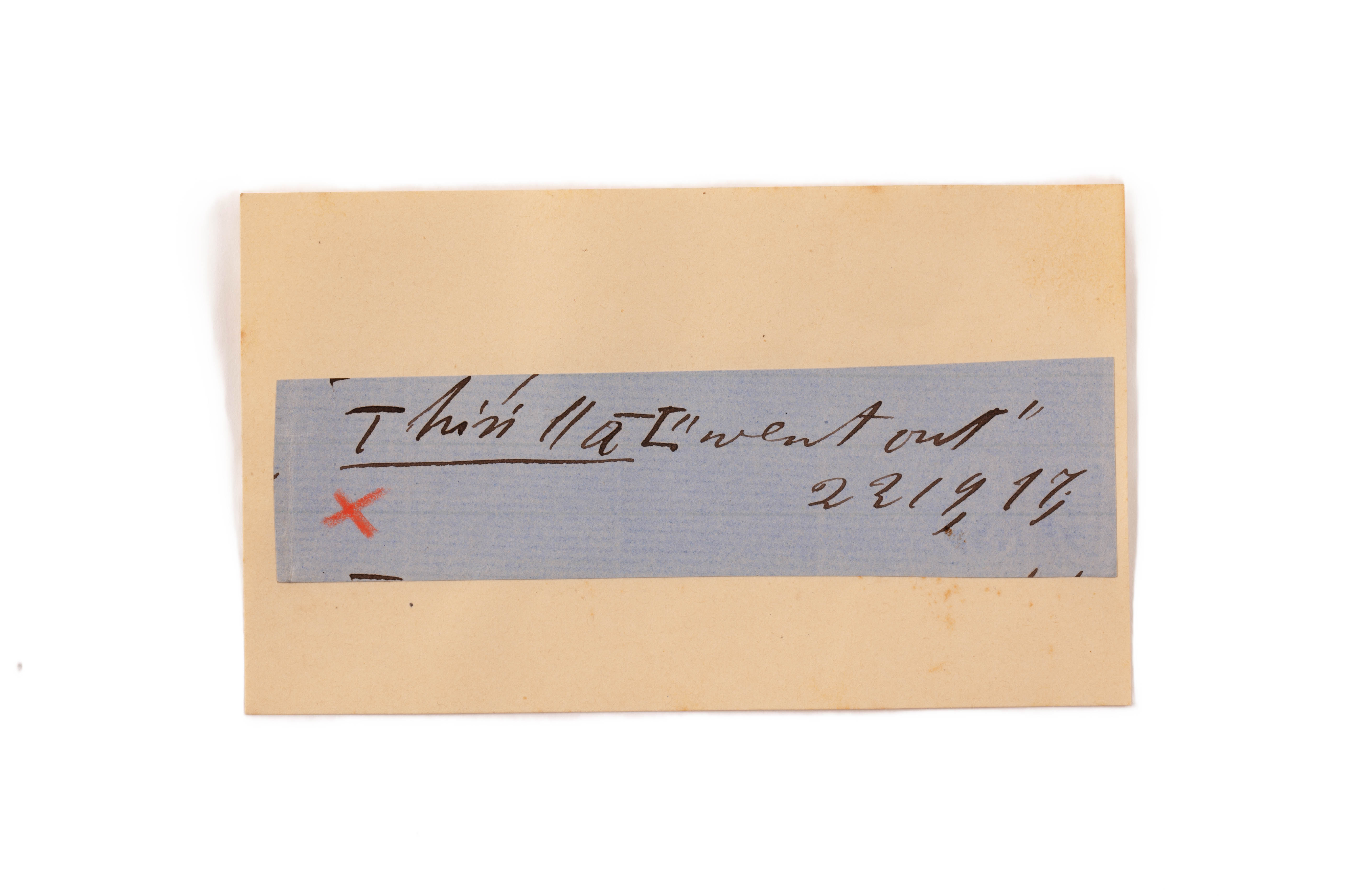 ink on blue paper glued on card