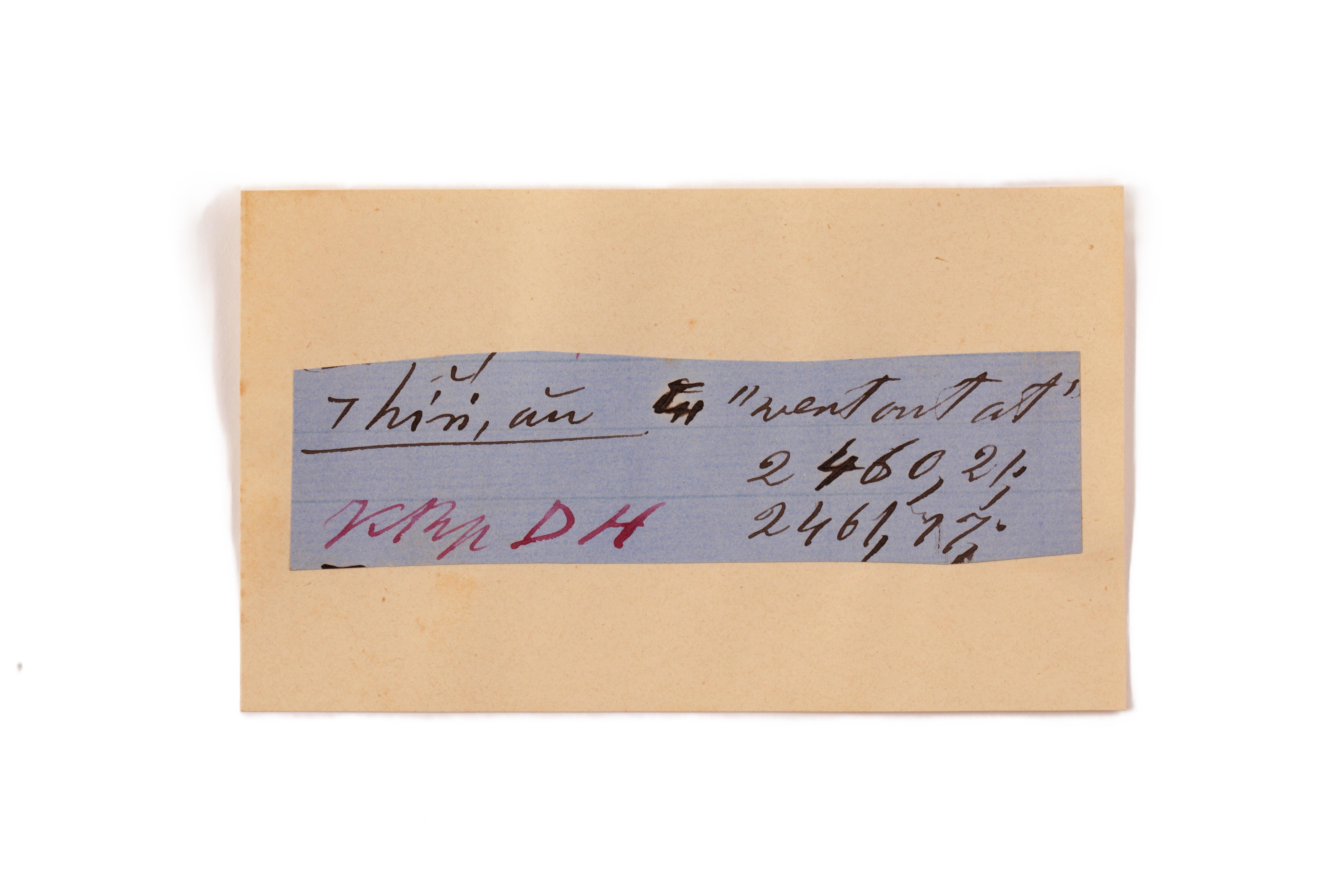 ink on blue paper glued on card