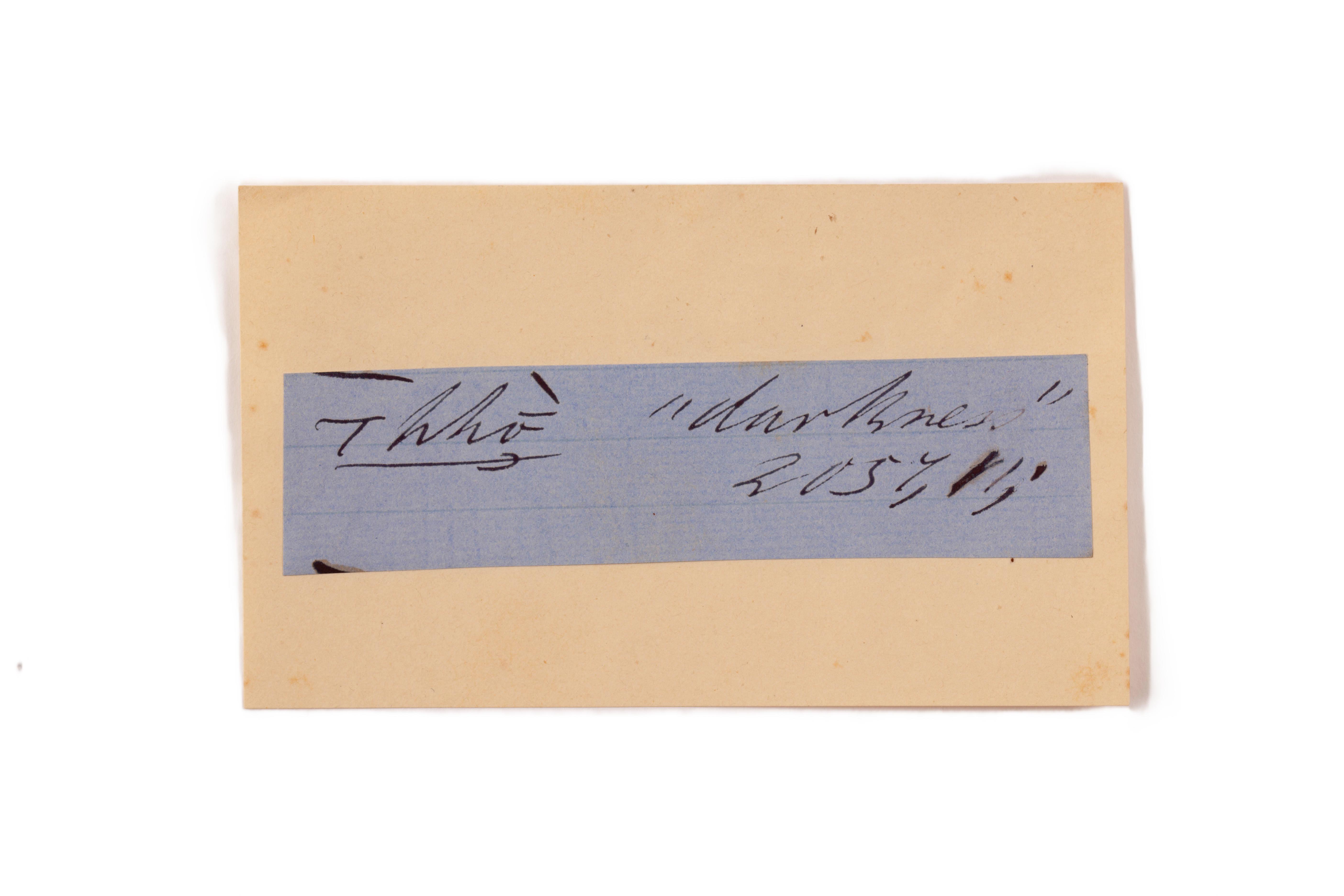 ink on blue paper glued on card