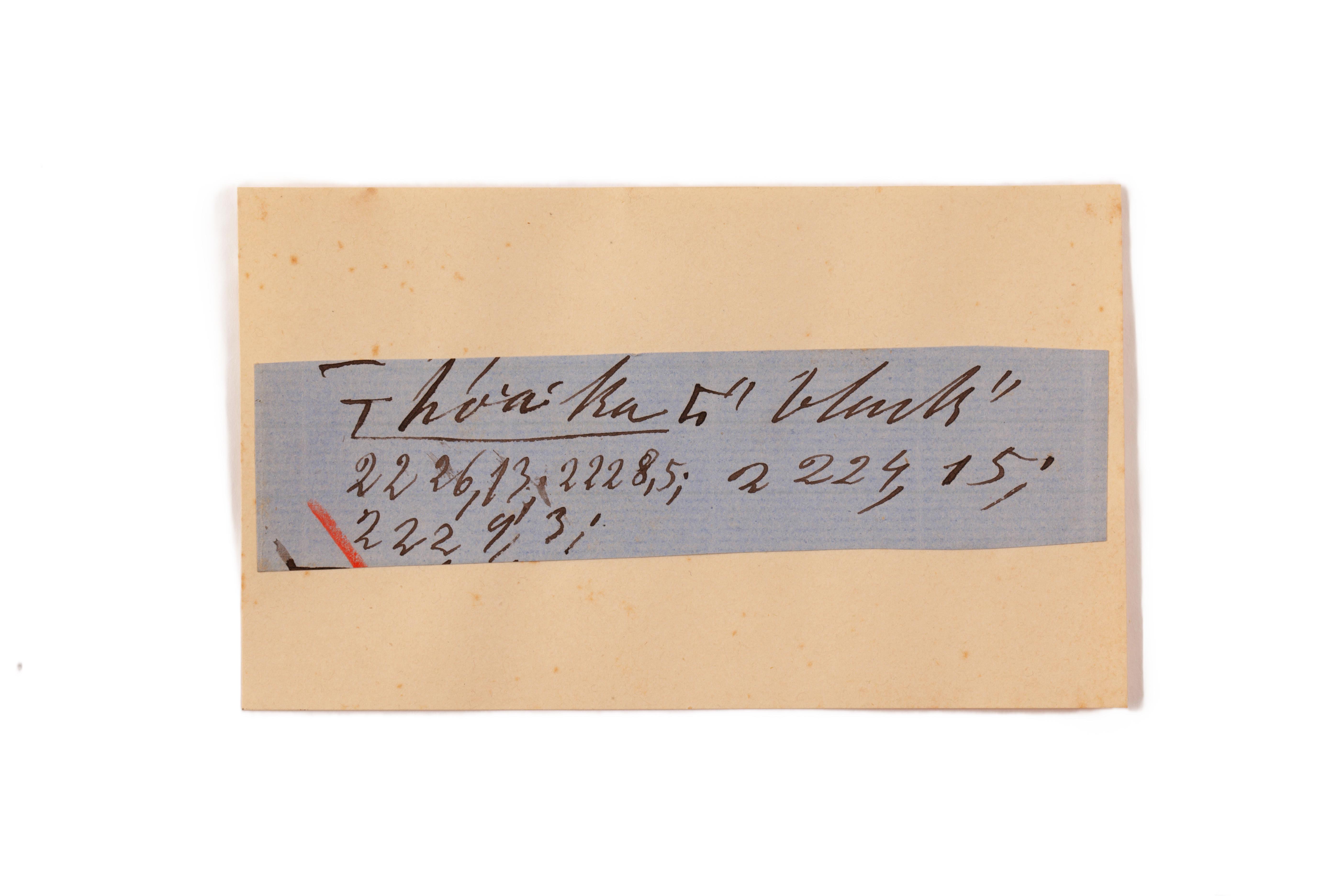 ink on blue paper glued on card