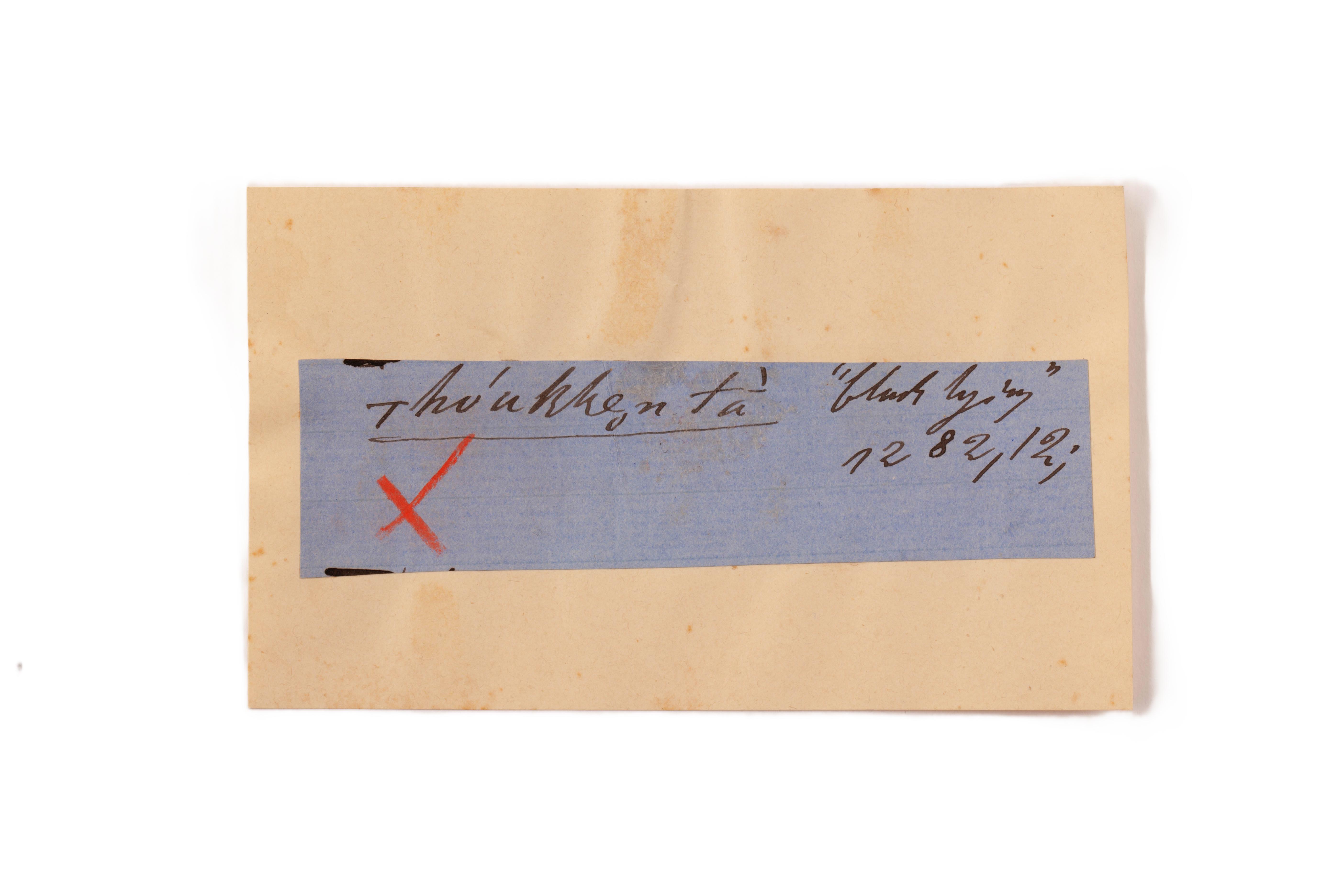 ink on blue paper glued on card
