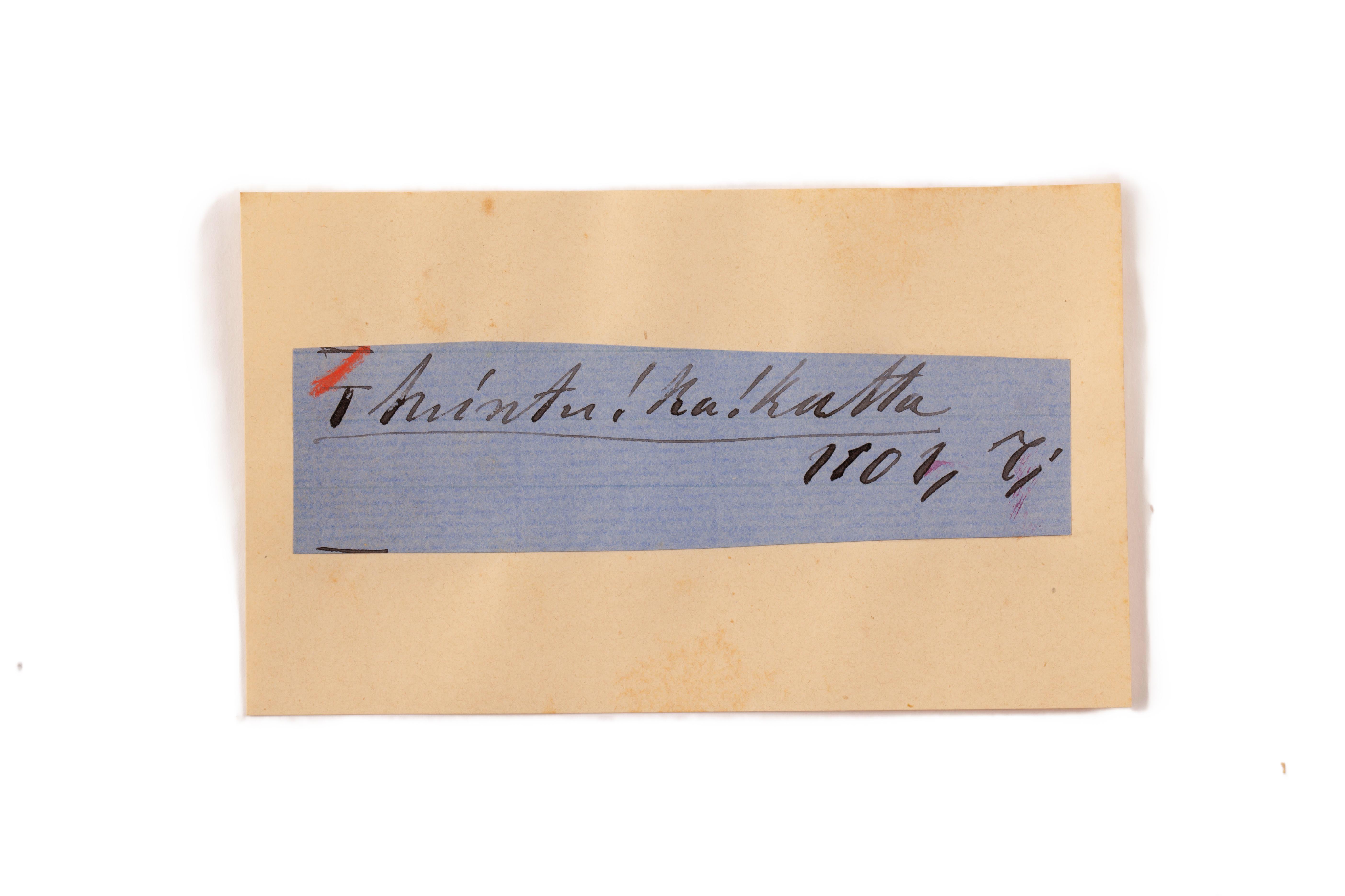 ink on blue paper glued on card