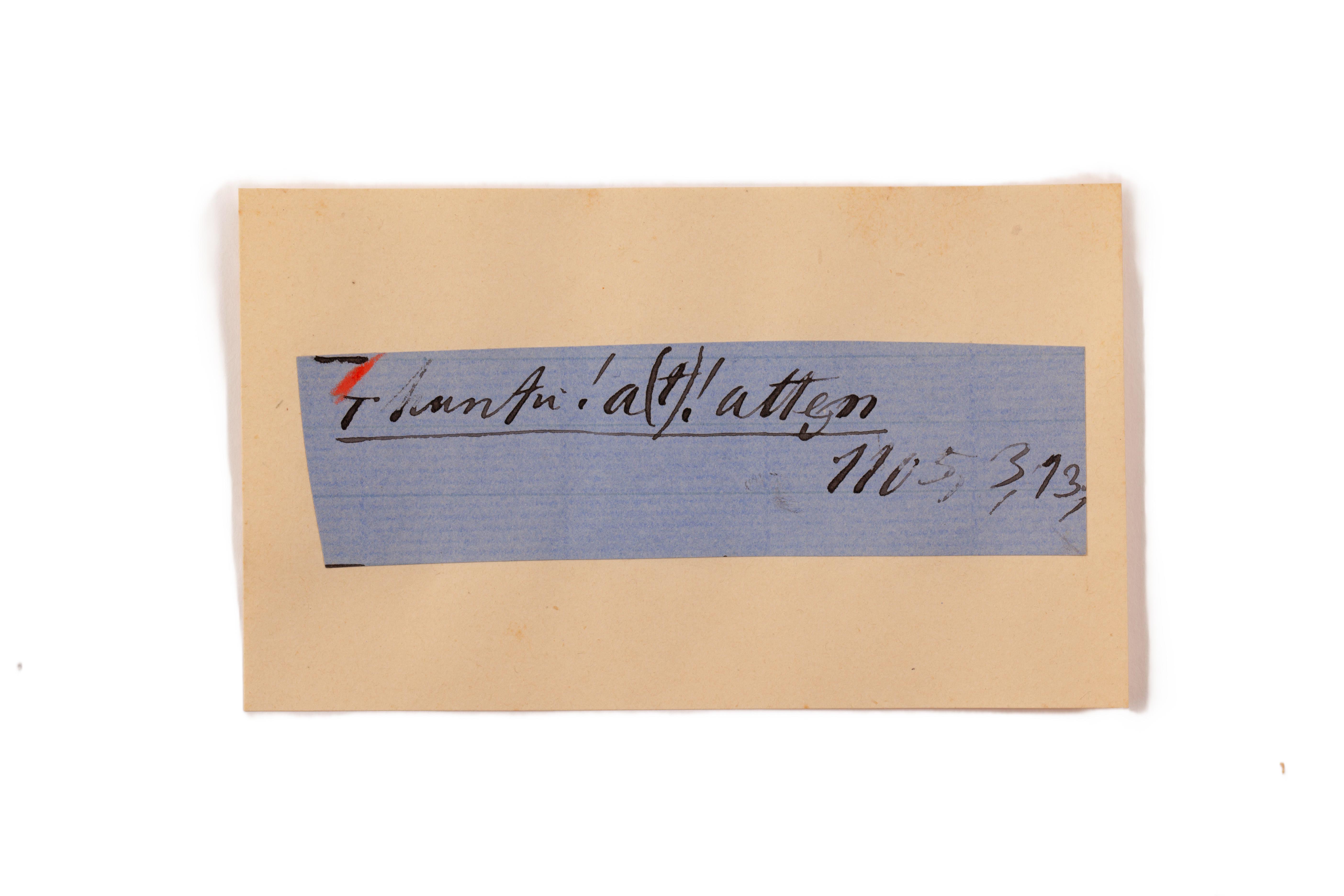 ink on blue paper glued on card