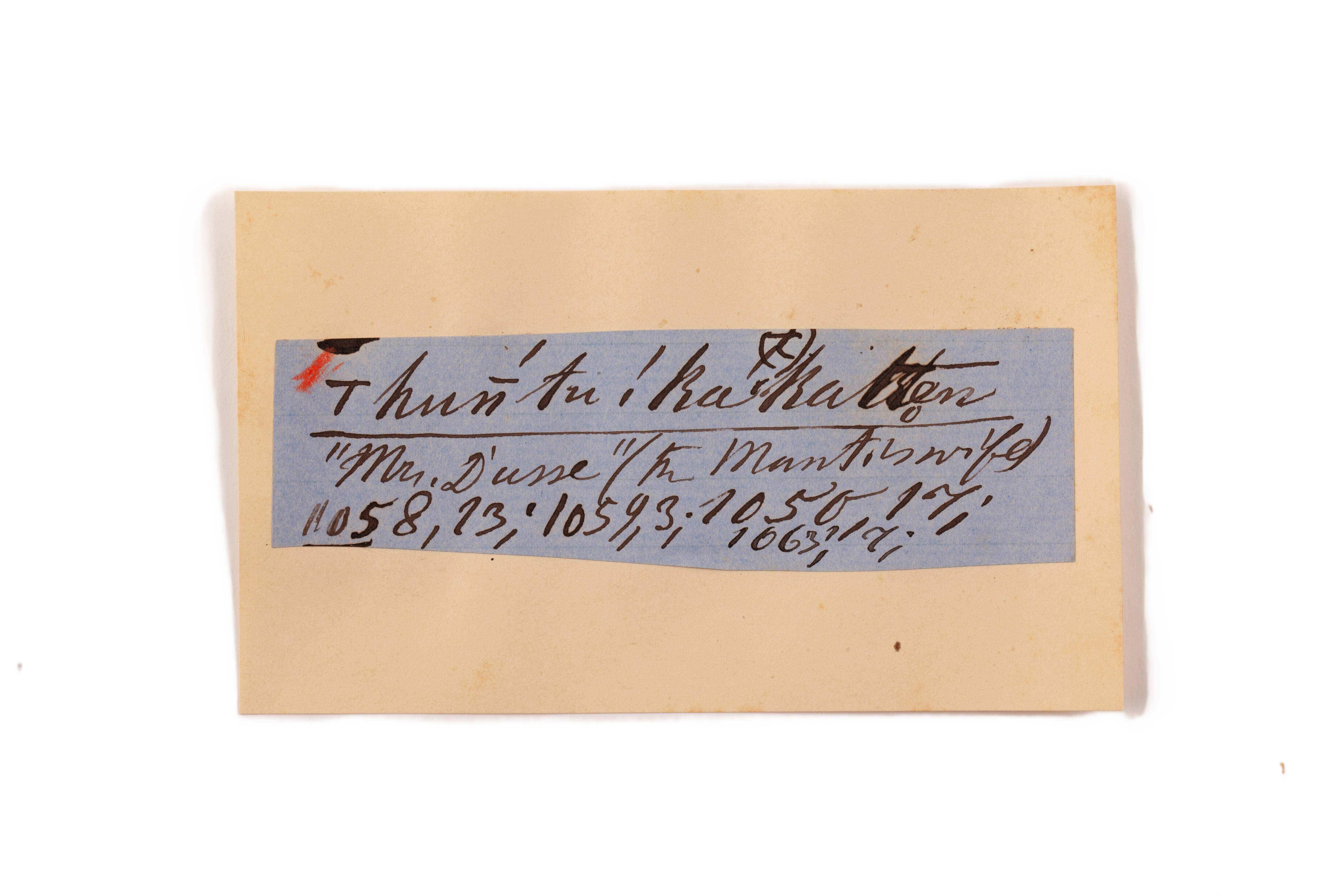 ink on blue paper glued on card