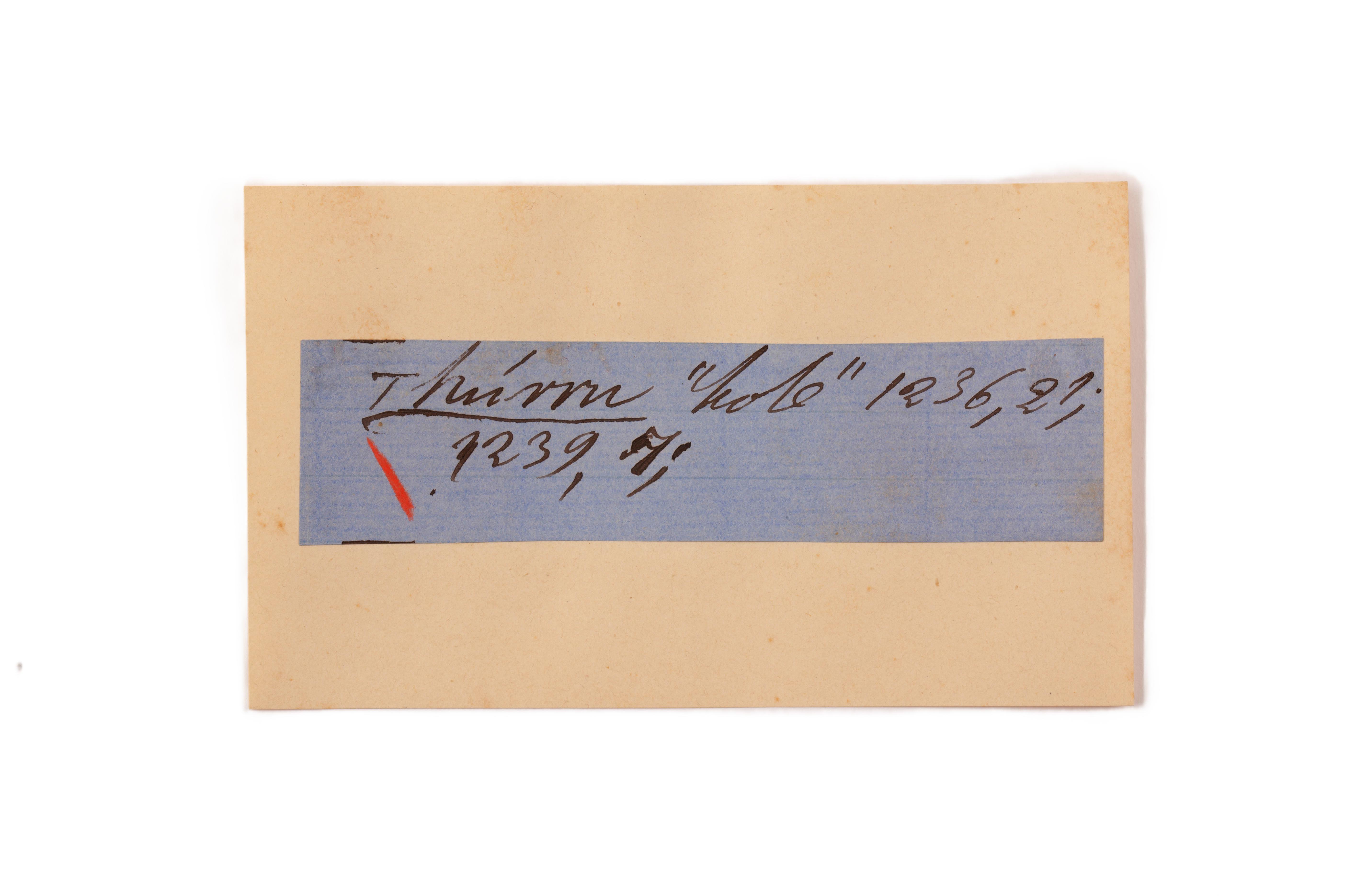 ink on blue paper glued on card