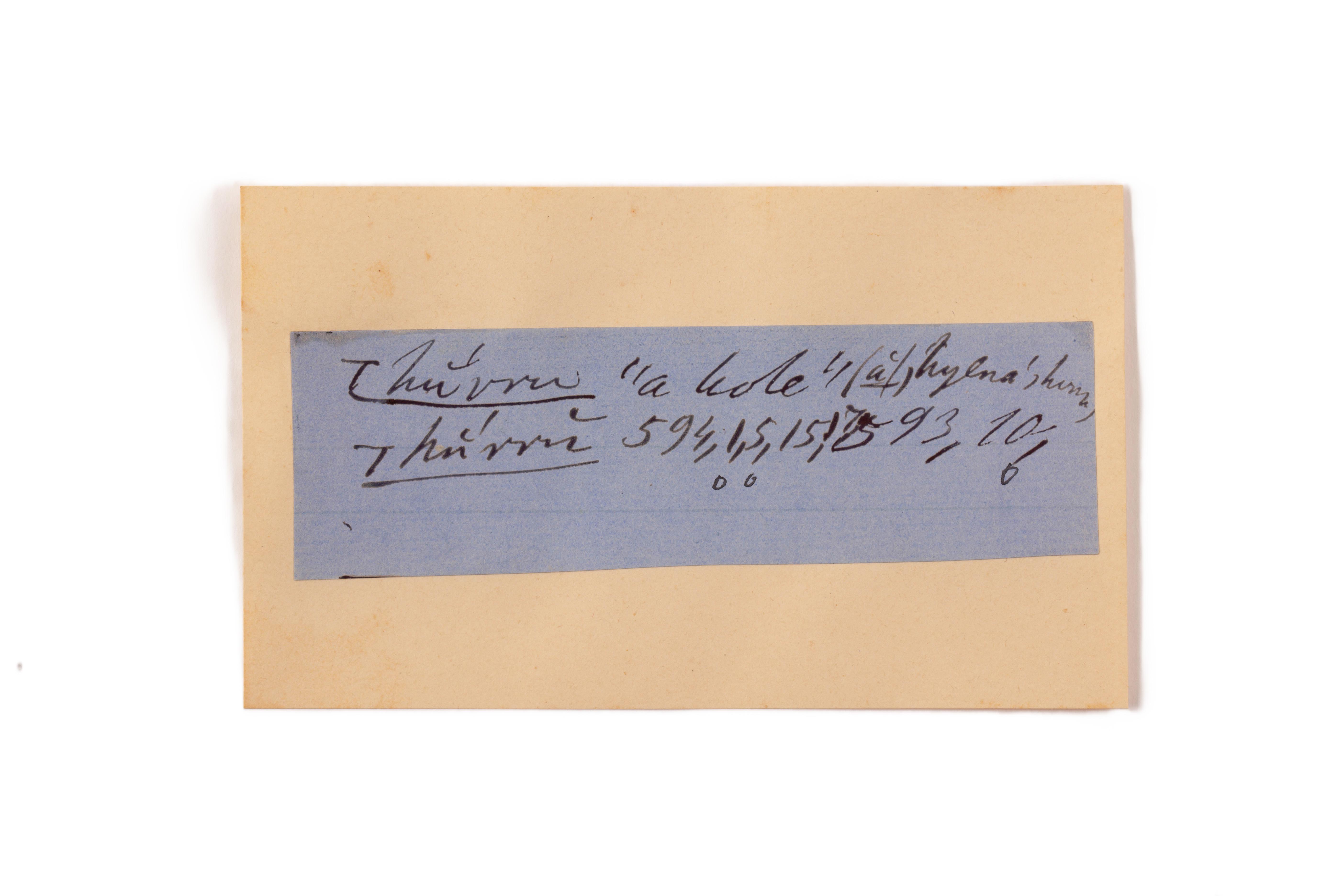 ink on blue paper glued on card