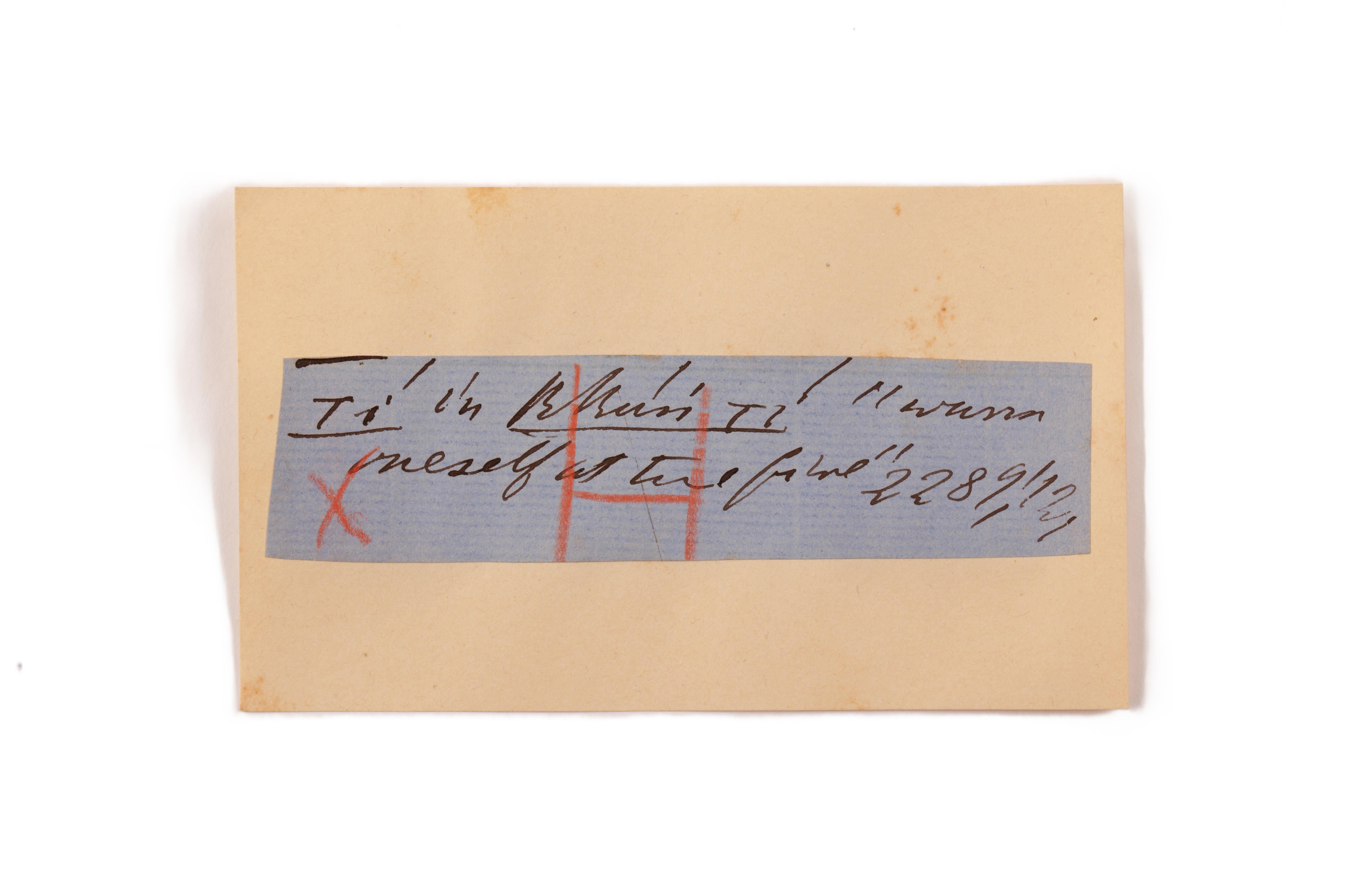 ink on blue paper glued on card