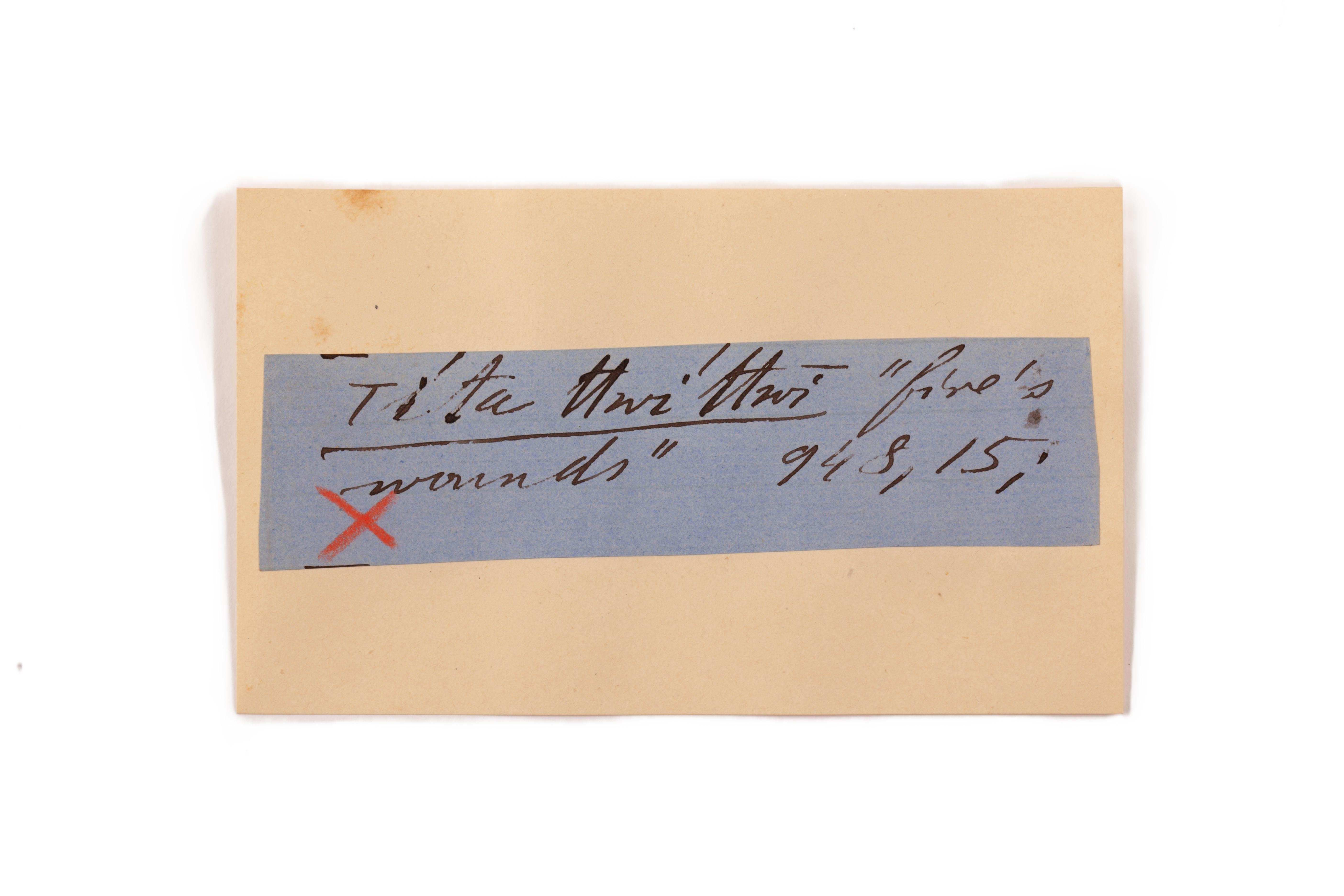 ink on blue paper glued on card