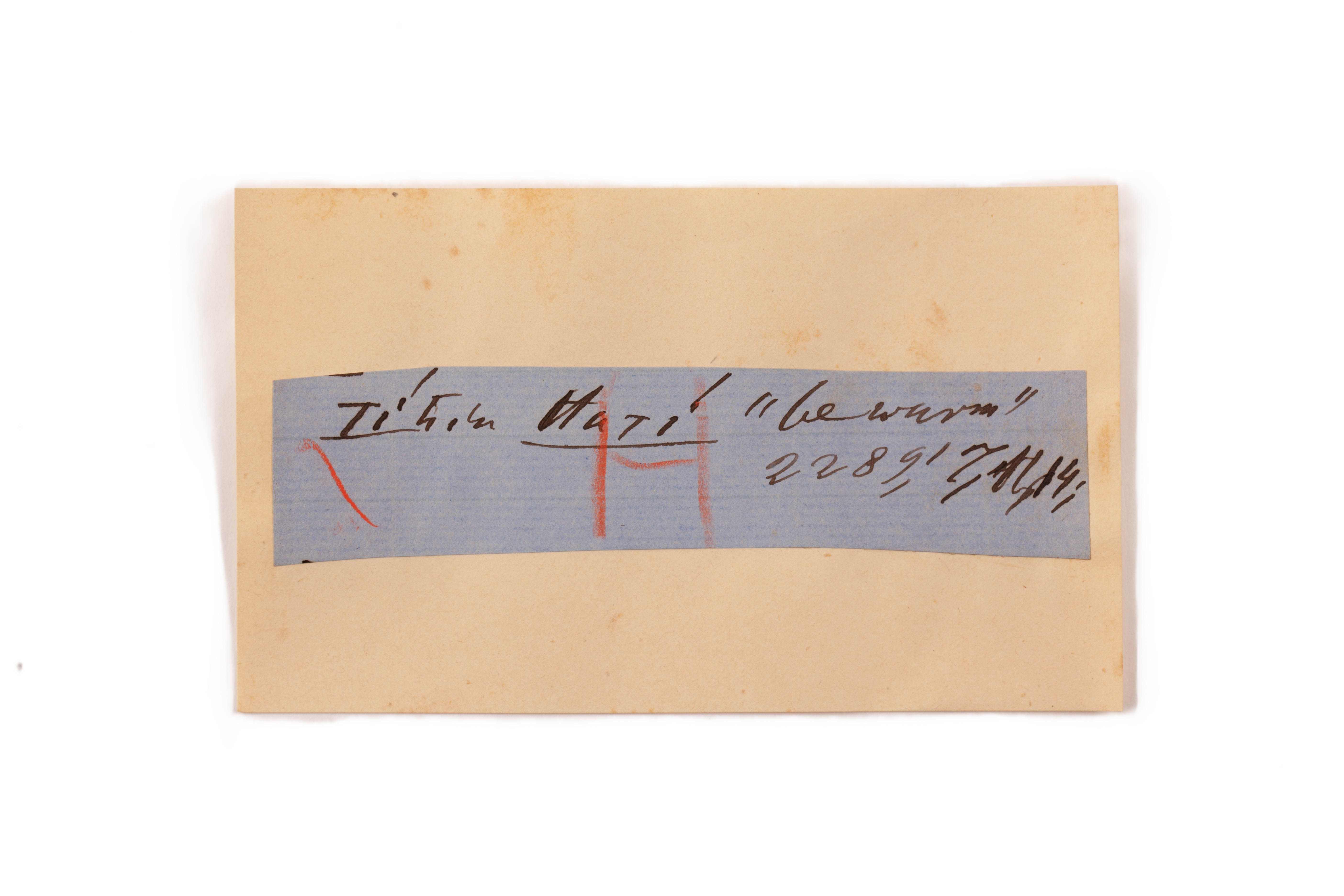 ink on blue paper glued on card