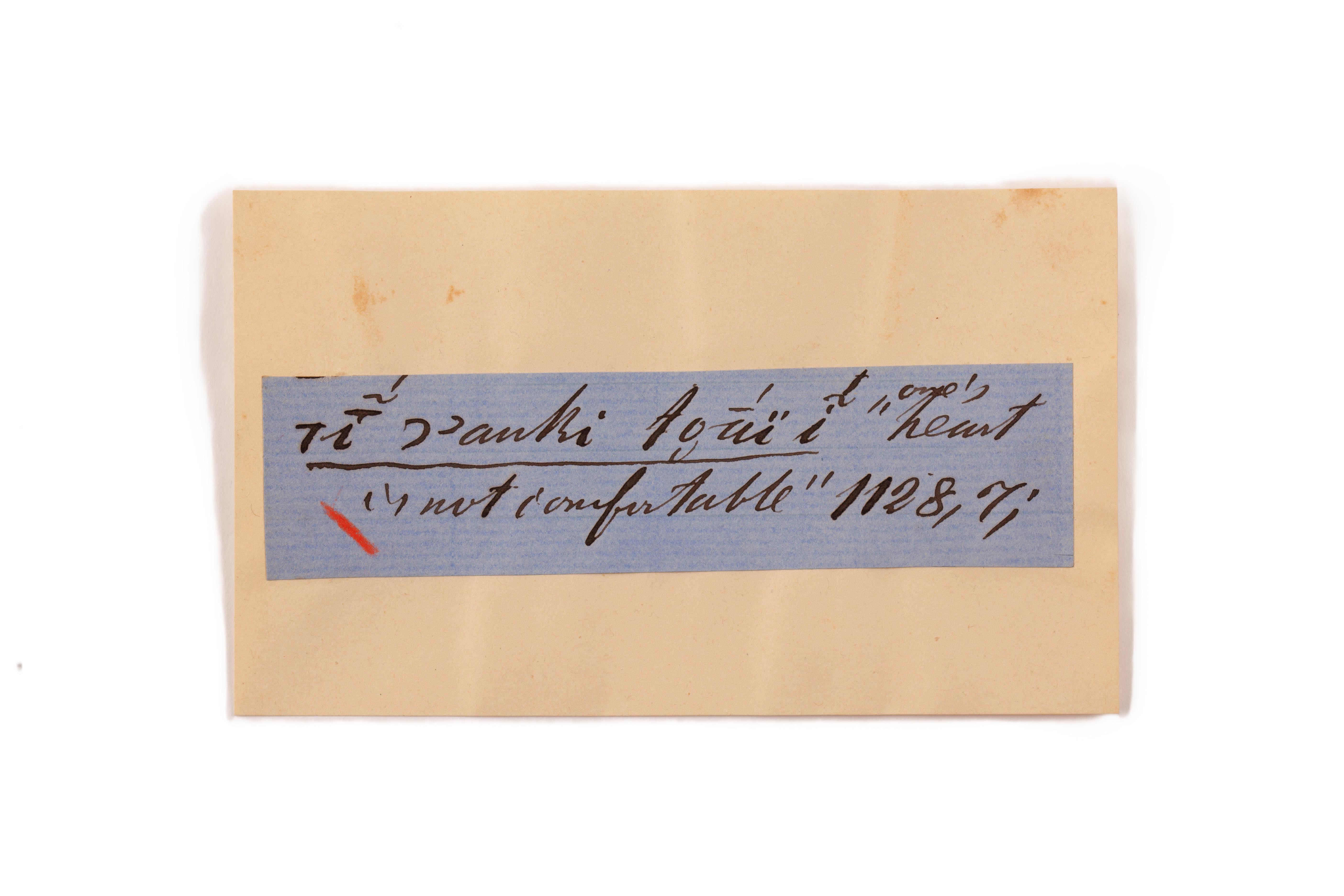 ink on blue paper glued on card