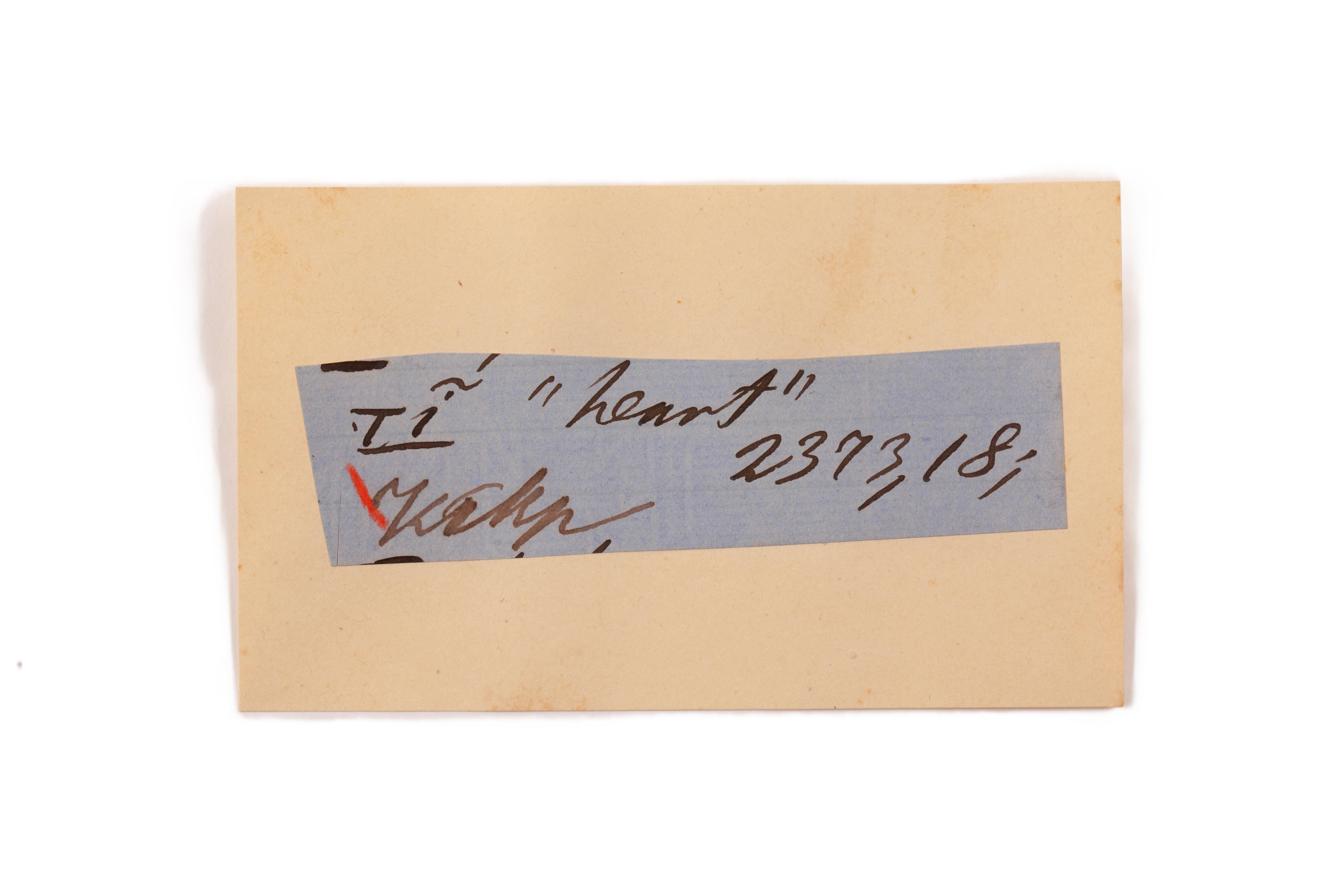 ink on blue paper glued on card