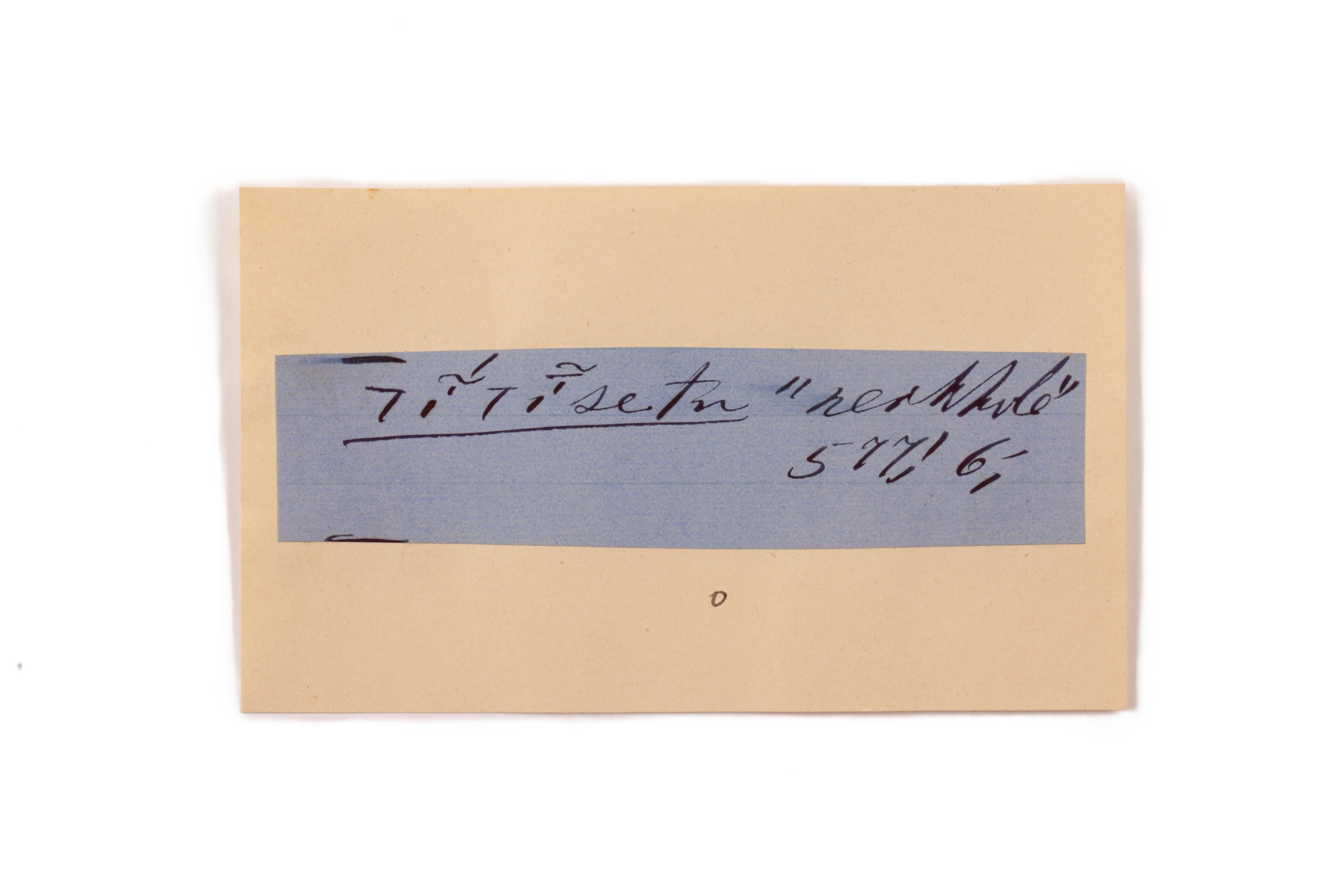 ink on blue paper glued on card
