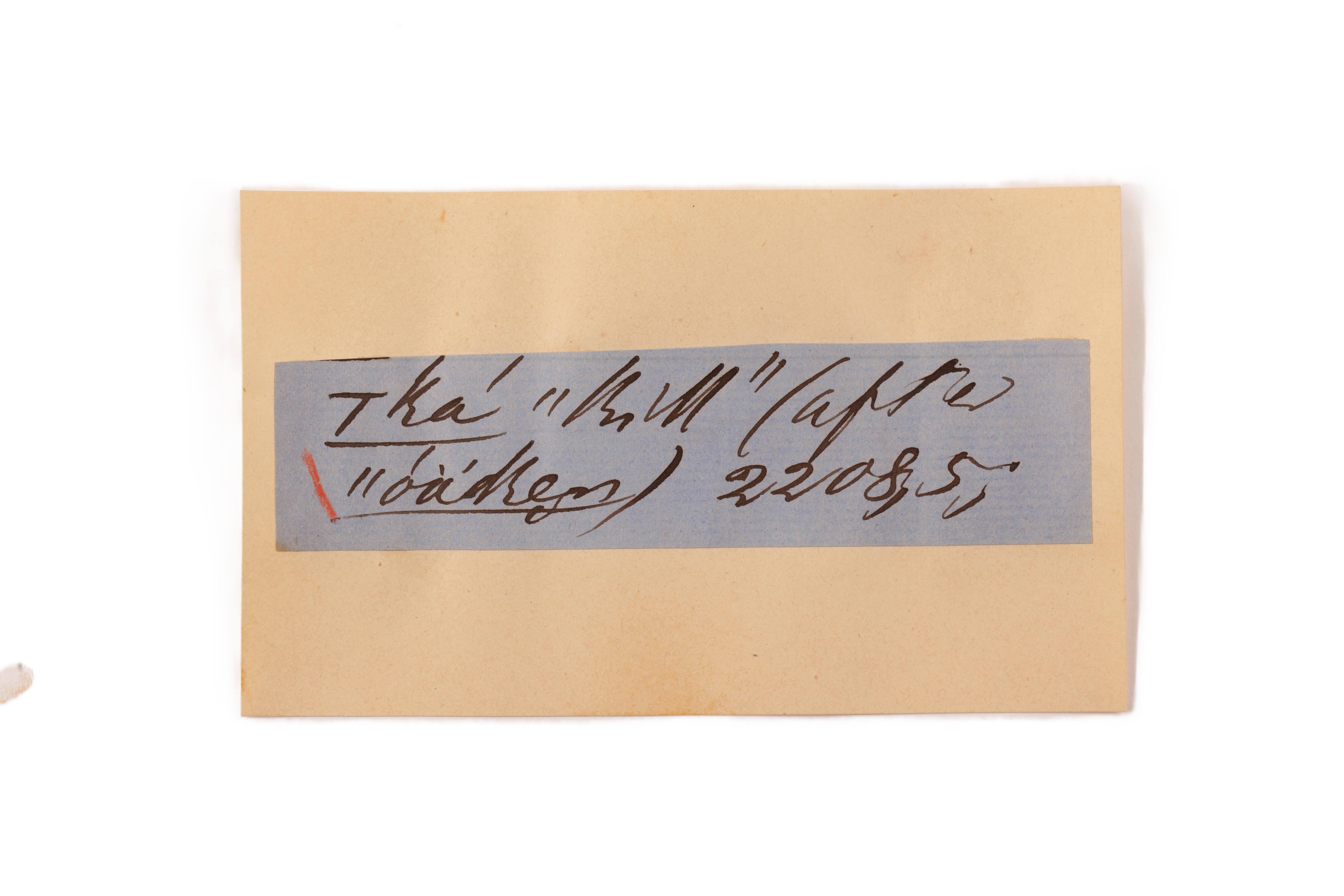 ink on blue paper glued on card