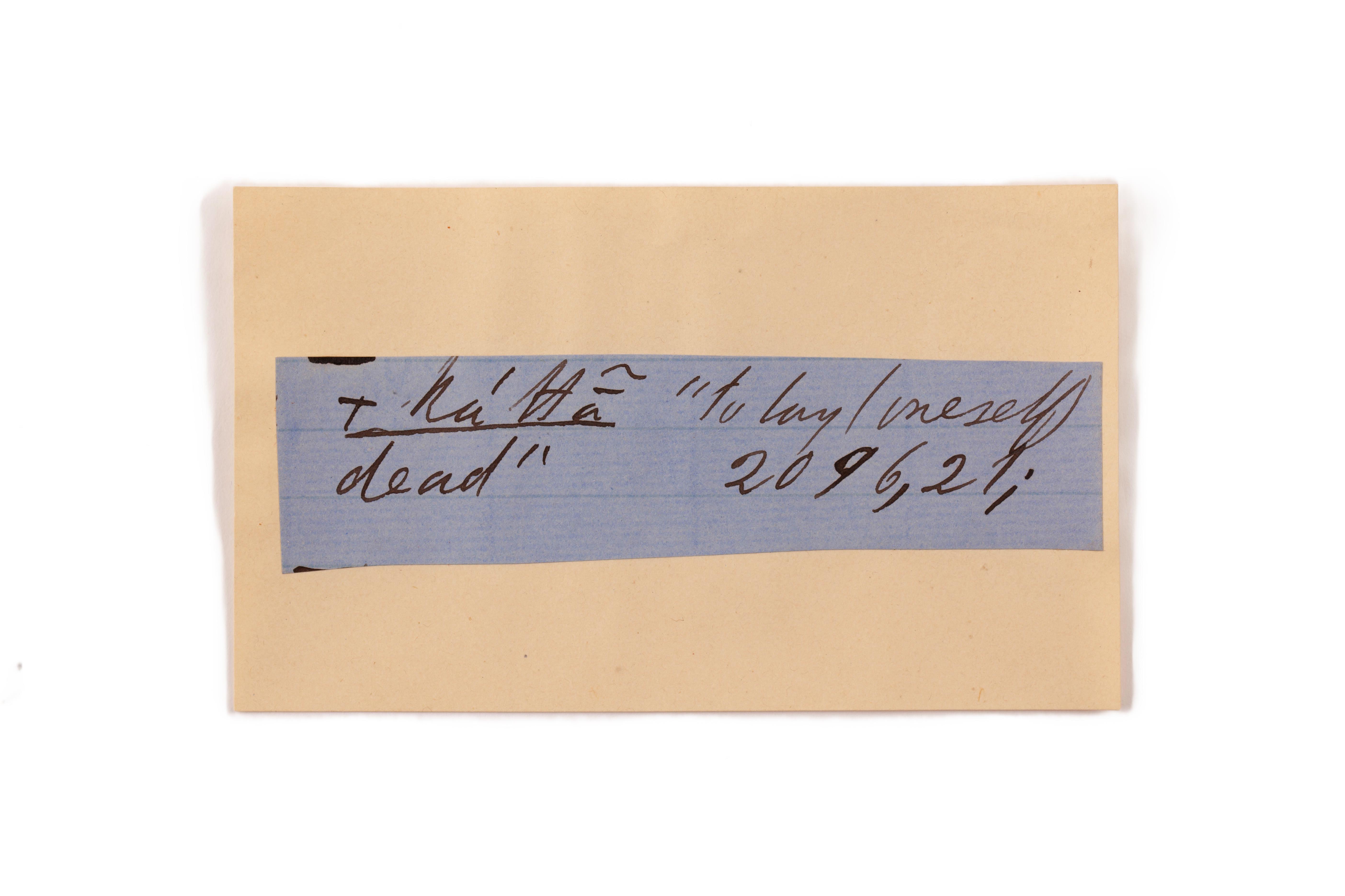ink on blue paper glued on card