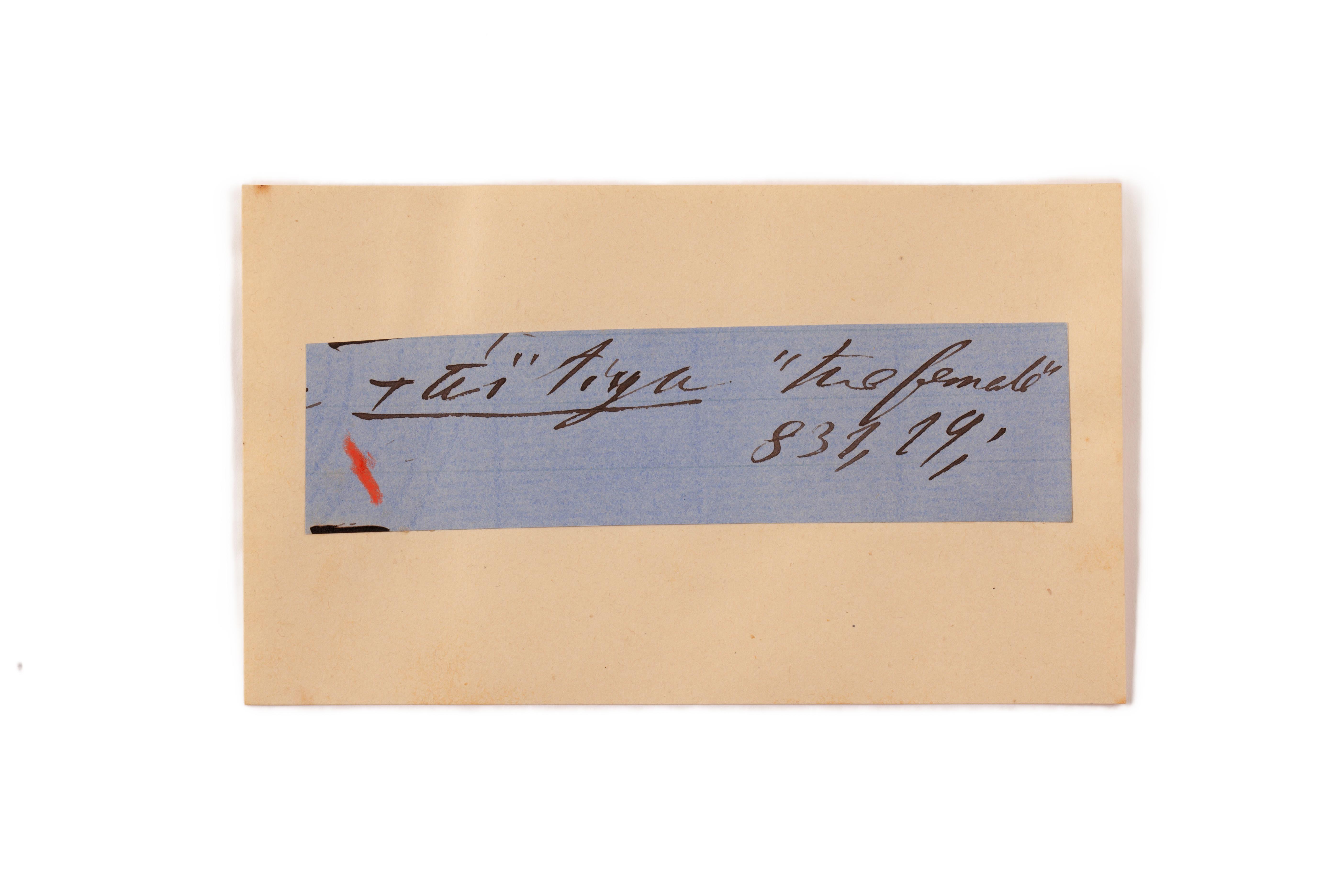 ink on blue paper glued on card