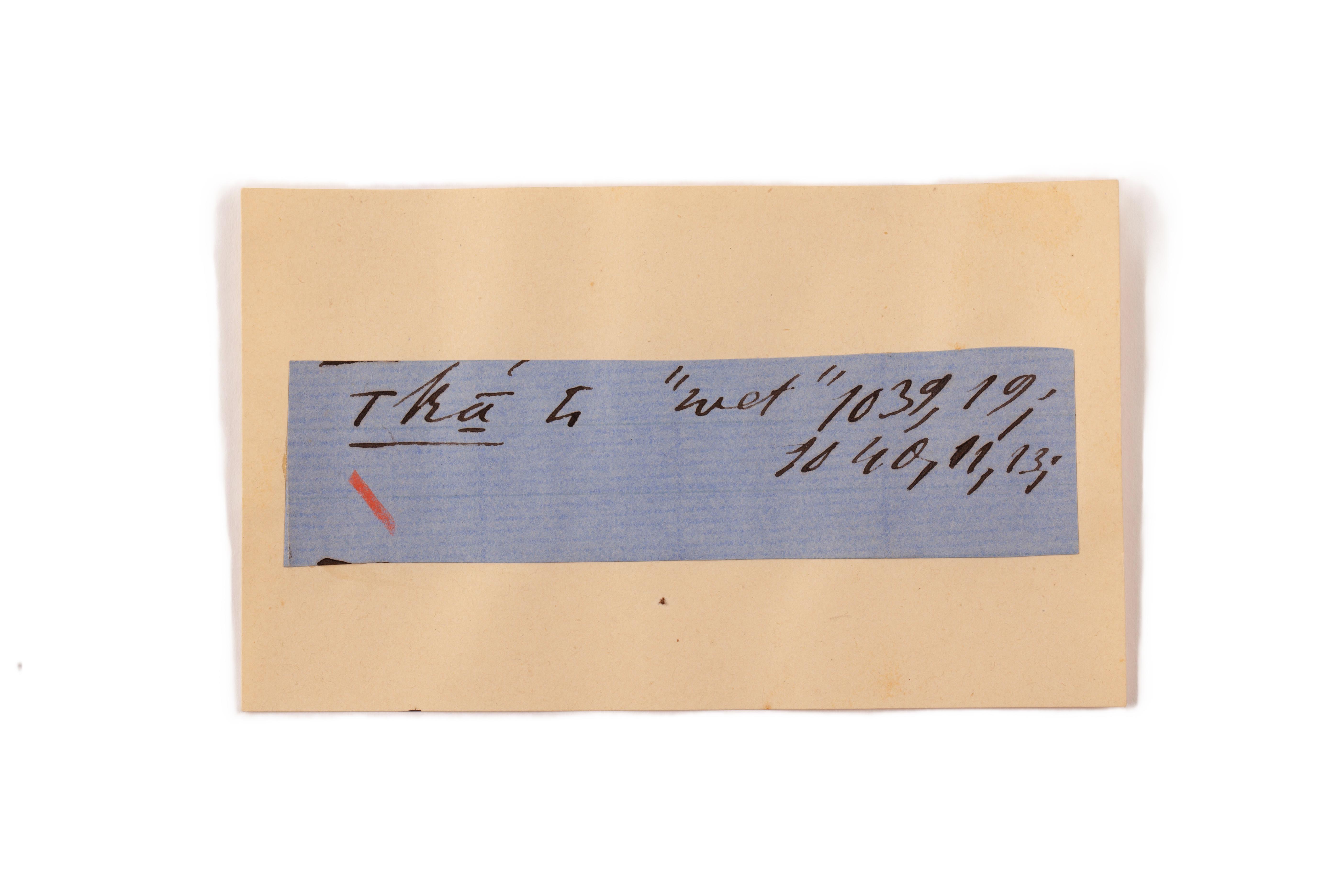 ink on blue paper glued on card