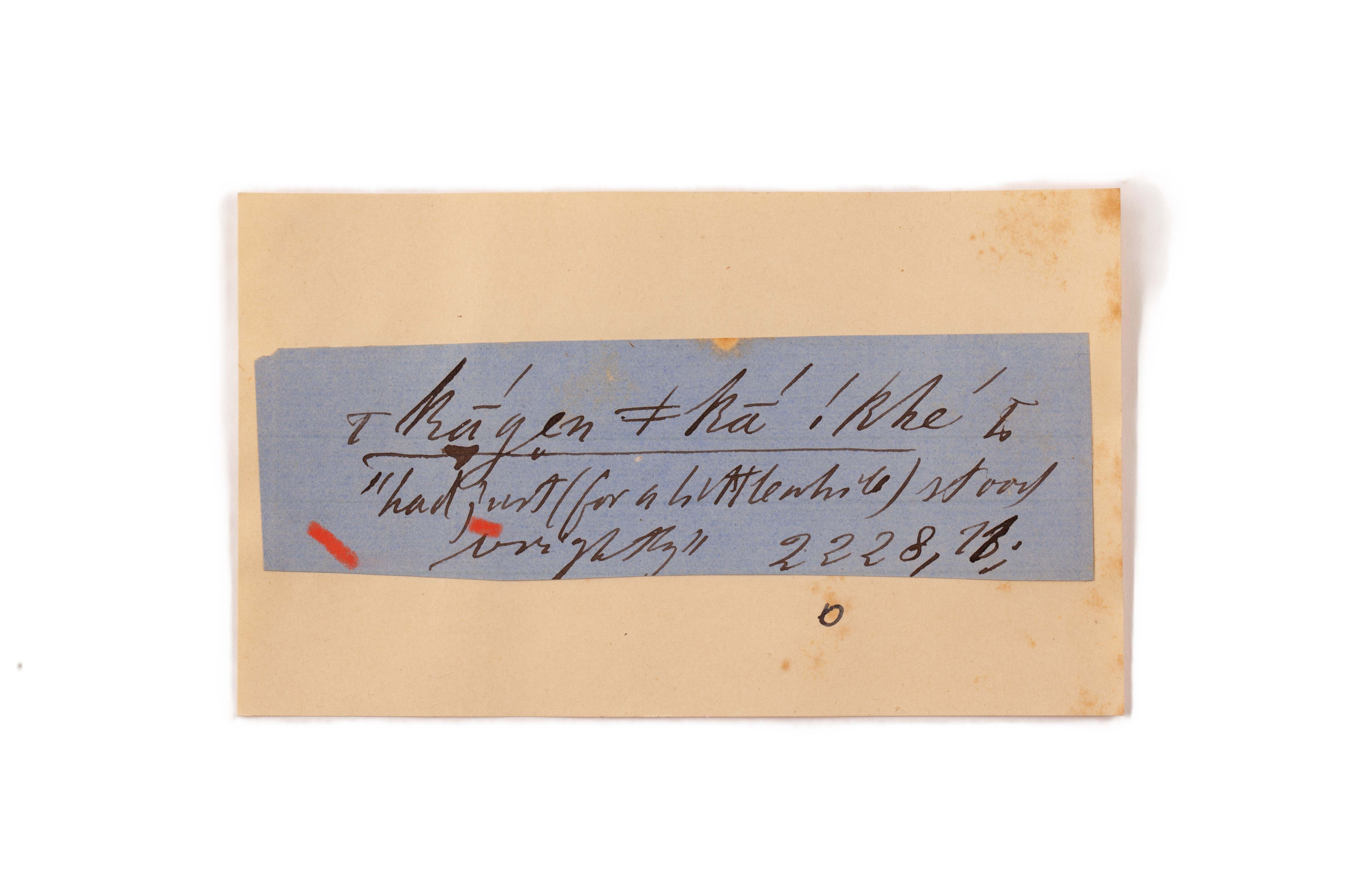 ink on blue paper glued on card