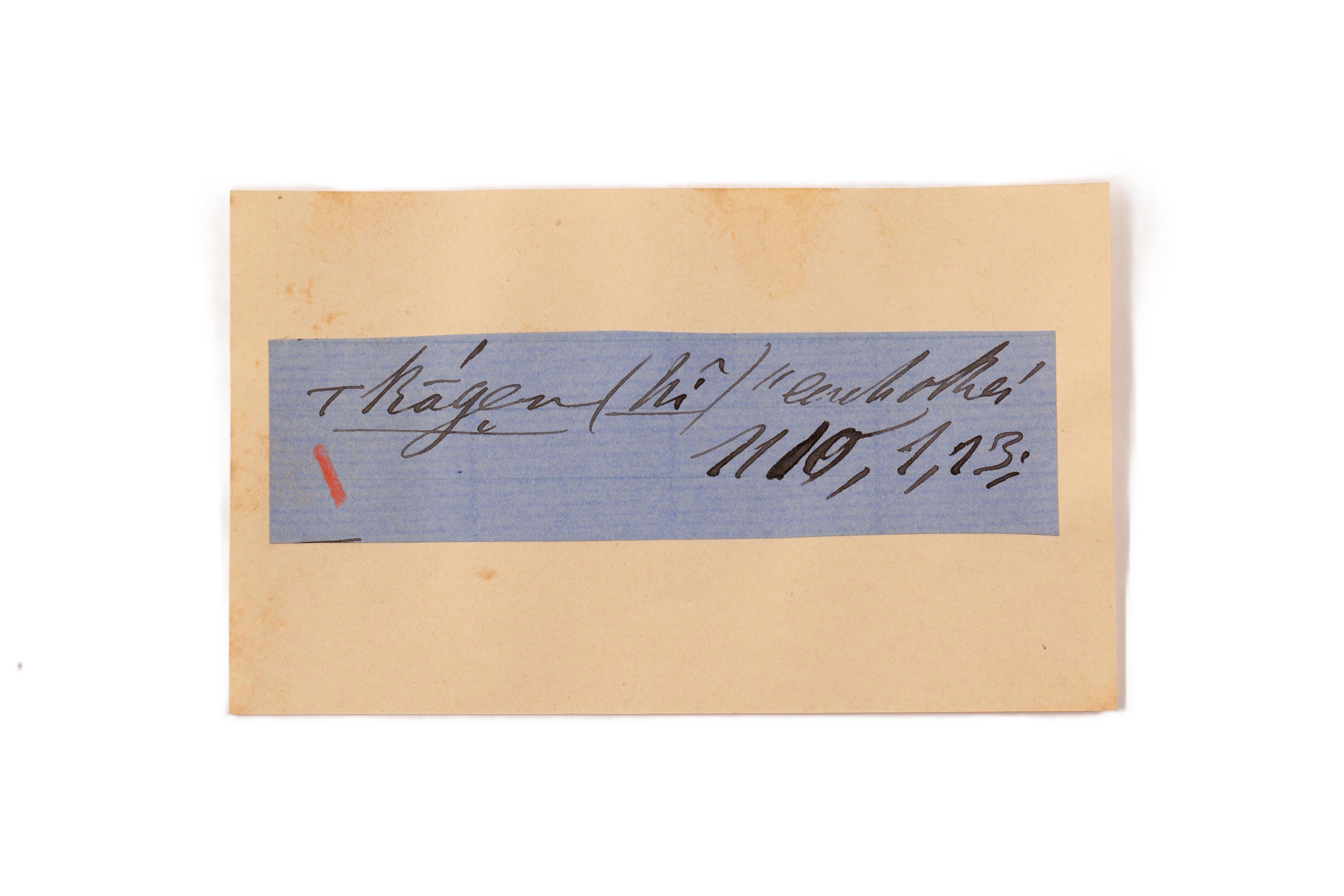 ink on blue paper glued on card